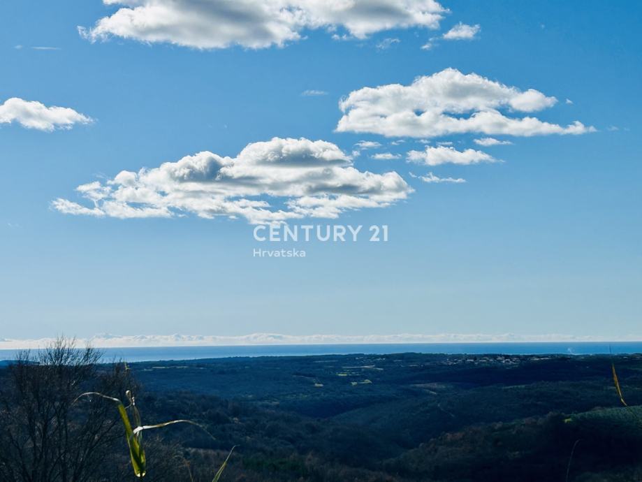 GROŽNJAN, OKOLICA, GRAĐEVINSKO ZEMLJIŠTE GRAĐEVINSKOM DOZVOLOM I PANORAMSKIM POGLEDOM NA MORE I ALPE