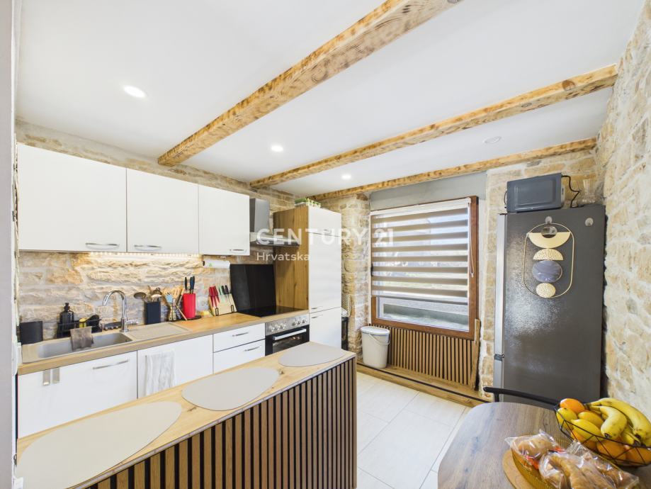 Prilikom obnove posebna je pažnja posvećena očuvanju povijesnog karaktera – originalni kameni zidovi i drveni grede pažljivo su uklopljeni u topao, domaći ambijent. Za udobnost tijekom svih godišnjih doba brine kombinacija podnog grijanja i radijatora. Debeli zidovi osiguravaju da je kuća tijekom ljeta ugodno hladna.