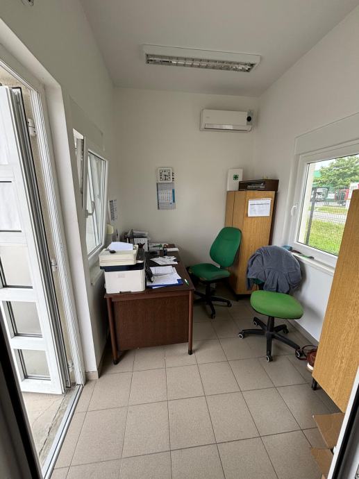 Poslovna hala u Tenji s kolnim ulazom površine 430m2. Hala ima kolni ulaz za utovar robe. Visina stropa u hali je 7,5 m. Hala je čvrste gradnje, betonski pod. Objekt ima kolni prilaz i ulaz u veći dvorišni prostor koji dopušta nesmetanu manipulaciju, te vlastiti parking prostor za četiri vozila. Uz halu u zakup ulaze i jedna zasebna uredska cjelina, zajednički dio čajne kuhinje (5m2) te sanitarni čvor (4m2). Ispred je asfaltirana vanjska površina od 542 m2