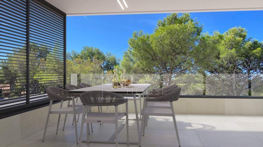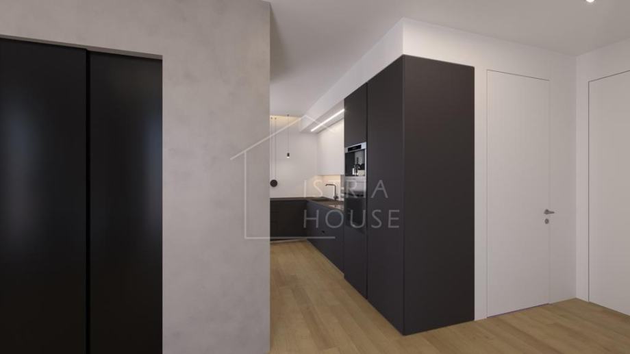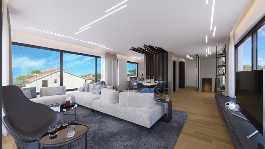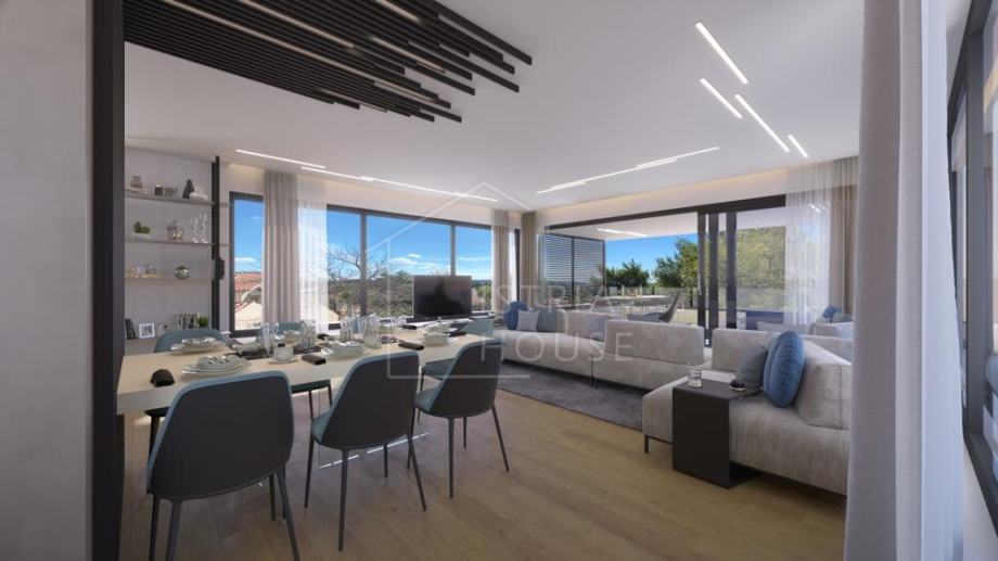 Zadnji kat, odnosno drugi kat je uvučen te će se tu nalaziti radna soba sa kupaonicom koja može poslužiti kao dodatna spavaća soba, kuhinja, blagavaona, dnevni boravak koji čine jednu cjelinu usmjerenu prema vanjskoj terasi na kojoj potom nalazimo ljetnu kuhinju sa blagavaonskim stolom te sa sjedećom garniturom.