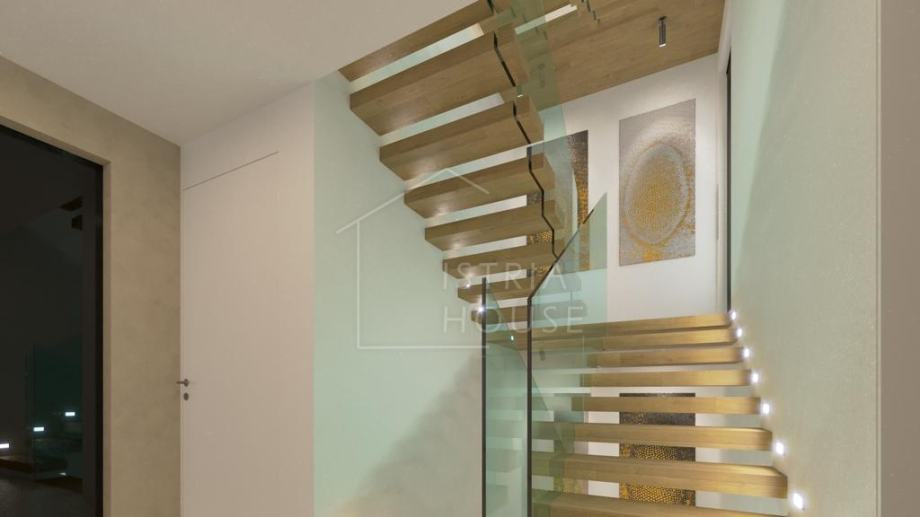 Prvi kat je za odmor, odnosno tu će biti smještene 3 spavaće sobe, svaka sa svojom kupaonicom i garderobom. Od toga najveća spavaća soba ima izlaz na vanjsku lođu na kojoj će biti smještena privatna relax zona sa sjedećom garniturom i jacuzzijem.