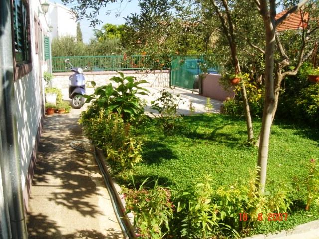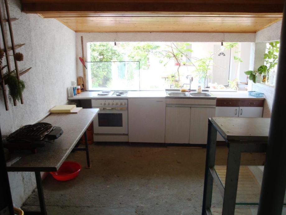 Uz 4 parkirna mjesta (dodatni parking moguć i ispred kuće - ne naplaćuje se), na parceli se nalazi i konoba s podrumom koja je zaseban objekt površine 35m2, povrtnjak te dodatno vanjska kuhinja.