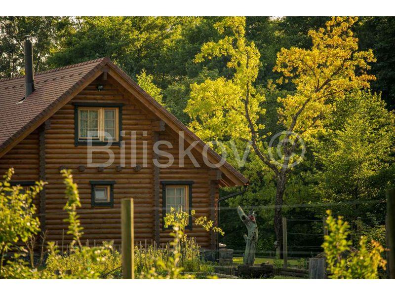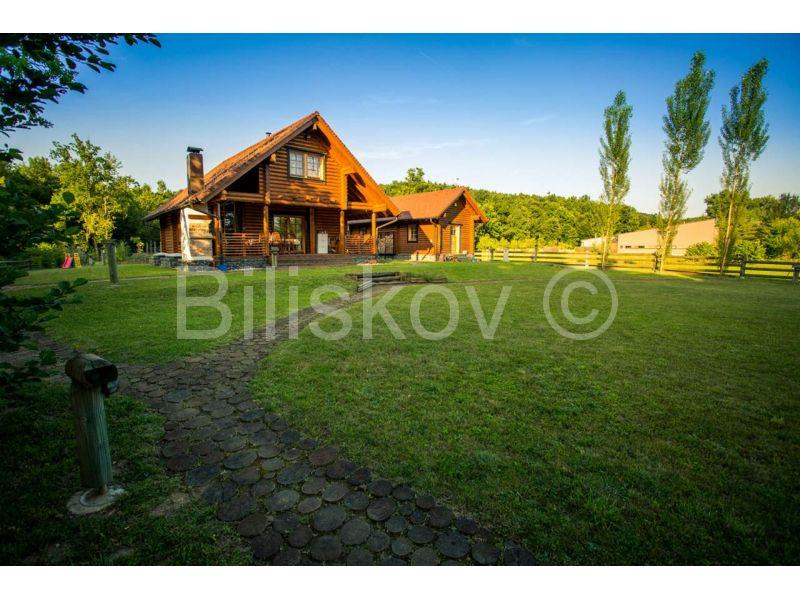 Karakteristike: Površina kuće, Podruma sa saunom, prostorom za igru i vinskim podrumom, Prizemlja sa dnevnim boravkom, kuhinjom, kupaonicom, gostinjskom i dječjom sobom, Potkrovlja sa spavaćom sobom, garderobom i kupaonicom, te pomoćne zgrade koja se sastoji od dvije prostorije sa namjenom male teretane i vrtnog prostora: 696 m2, Okućnica (vrt, vočnjak, zelene površine za igru, platoi na vlastitom kupalištu, šetnice od drveta): 3796 m2. Kuća je smještena na rijeci Kupi. Postoj potok na parceli, okružena šumom. Udaljenost od golf igrališta : 400 metara