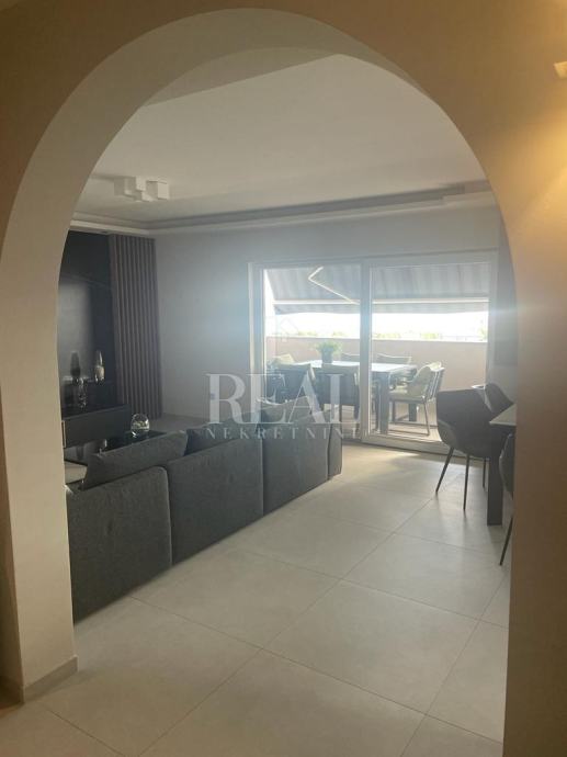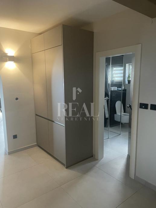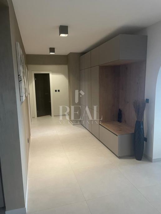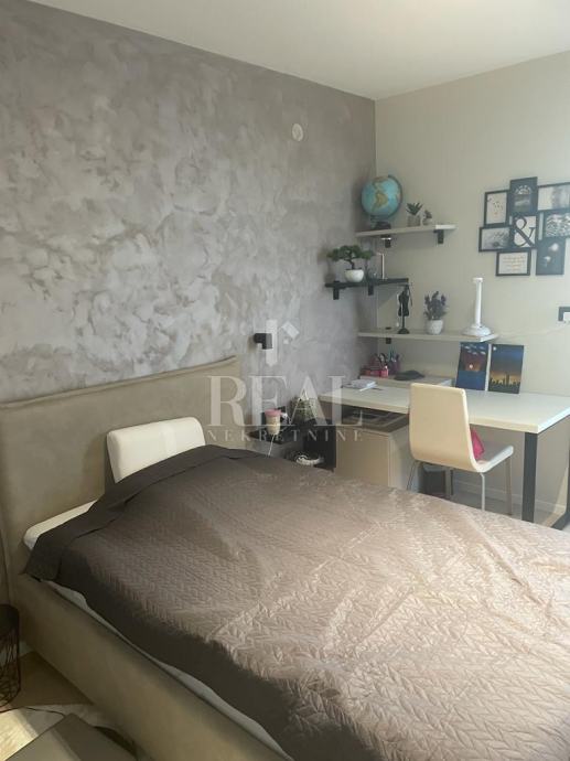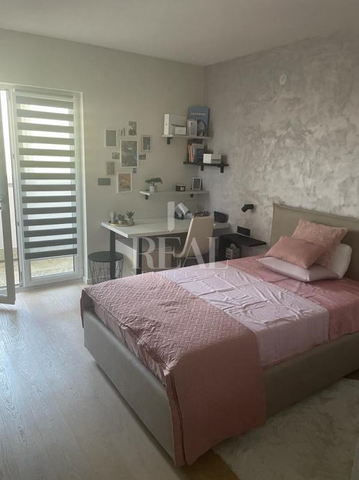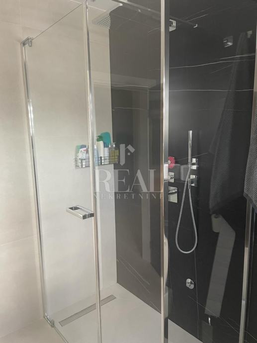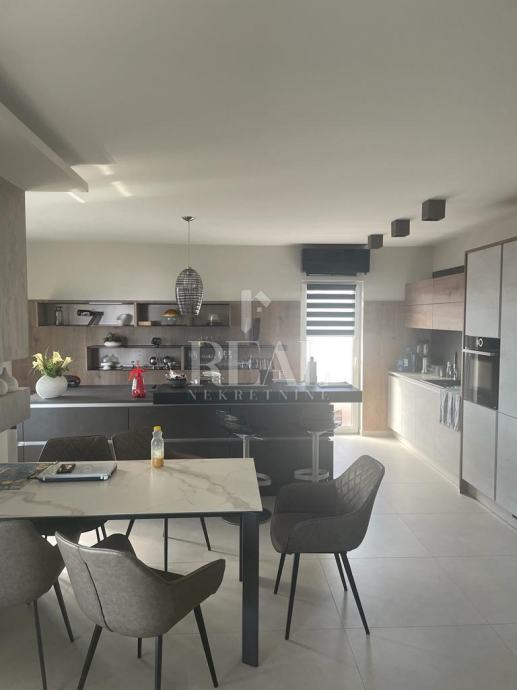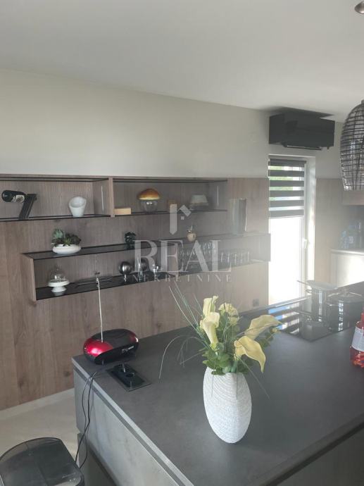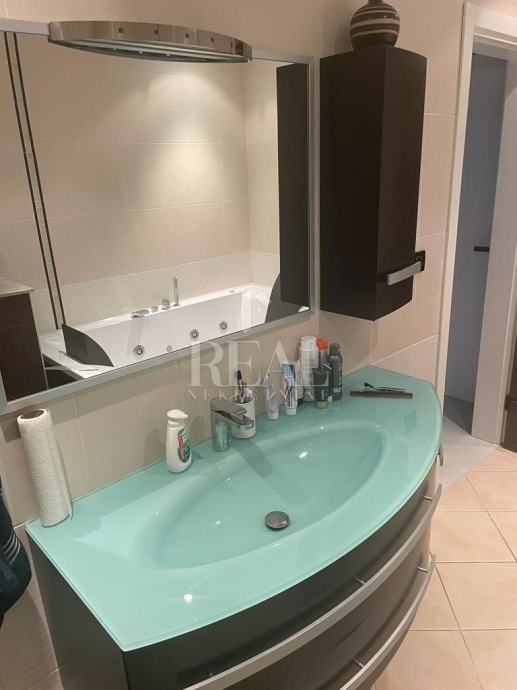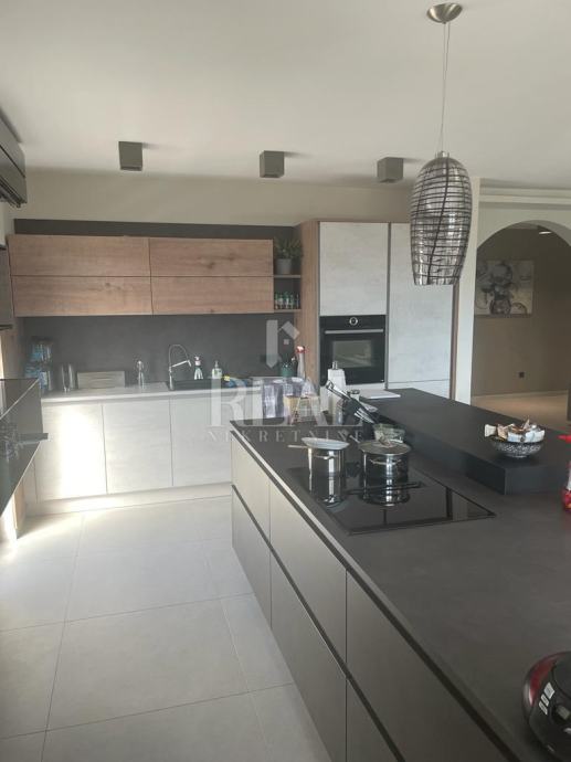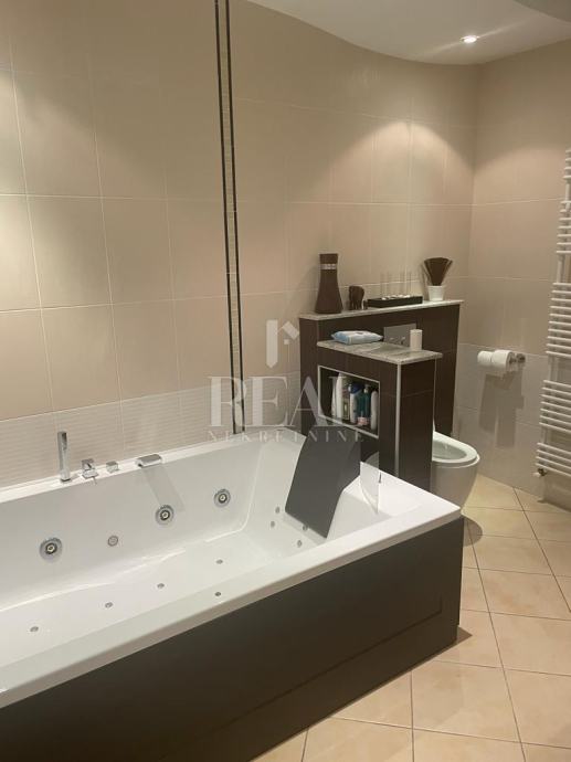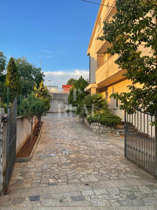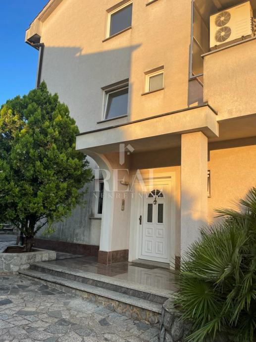 Turkovo, luksuzna etaža urbane vile u mirnoj slijepoj ulici. Etaža se rasprostire na 204m2. Budući da ima vlastitu okućnicu od cca 150m2, te suhi prilaz u stambeni prostor stvara se osjećaj posjedovanja kuće. Pripadajući podrum od 22m2 i dva parkirna mjesta. Dvije lođe i terasa. Nekretnina koja odiše luksuzom i kvalitetom. Svaka prostorija je nadprosječno komforna, opremljena luksuznim dizajnerskim namještajem i vrhunskim ugradbenim materijalima. 3 spavaće sobe, dvije kupaone, veliki hodnik sa ugradbenim ormarima i ogroman "open space" s prostranim balkonom veličanstvenog pogleda na cijeli Kvarner. Etažno grijanje. Svi fiksni elementi nekretnine ostaju u cijeni! Rijetkost u ponudi nekretnina!