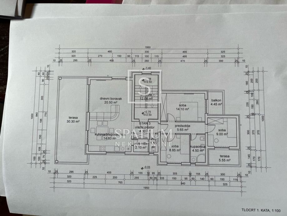 Zatim, kuhinja s blagovaonom te dnevnim boravkom te lijepe terase južne orijentacije od 30,30m2