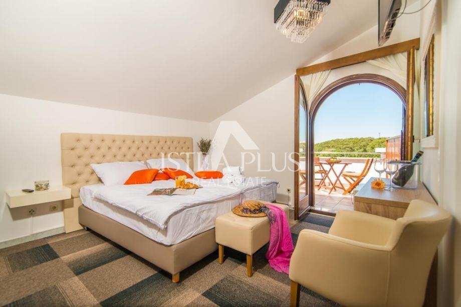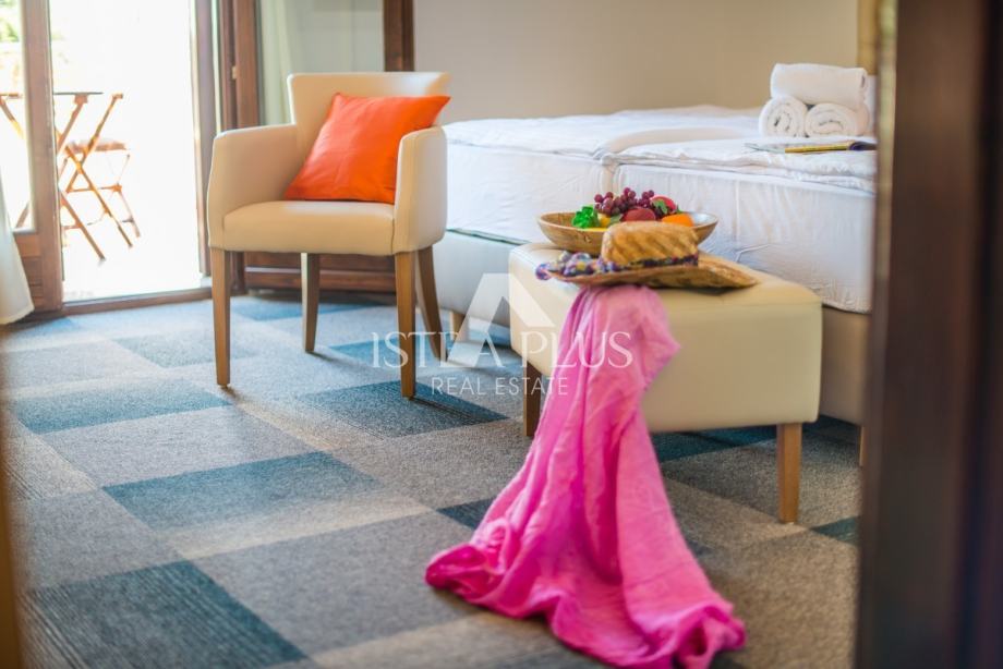 raspoređen na 16 soba sa kupatilom i terasom , kompletno opremljenih i namještenih s podnim grijanjem, nekoliko njih pružaju i pogled na grad i more . ( TV , Internet)