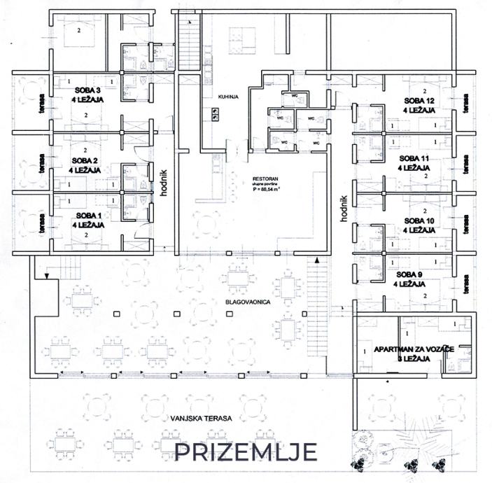 - Objekat je do sada poslovao u pansionskoj formi sa turističkim grupama.
