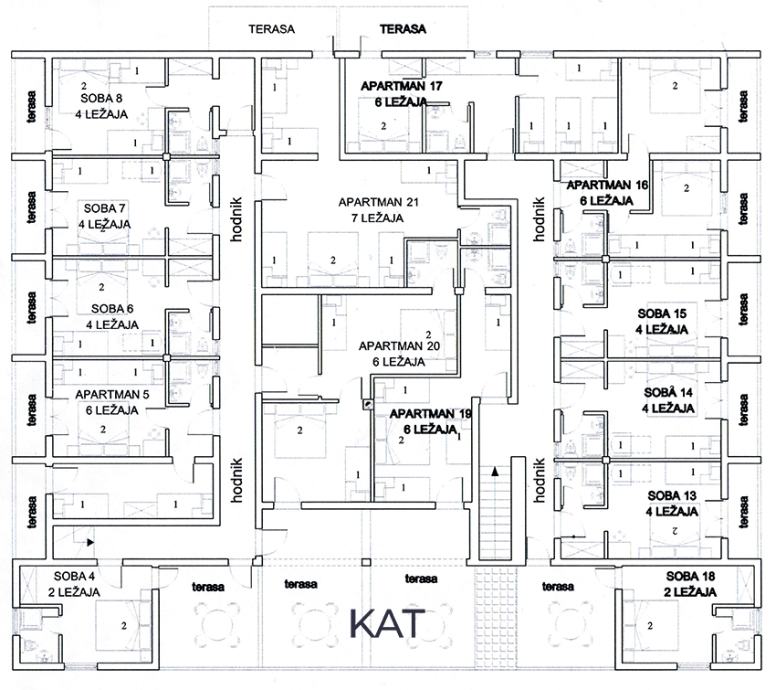- 16 SOBA 3-krevetnih sa kupaonicom i balkonom