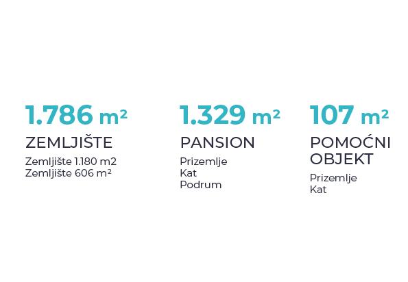 - Uz zemljišta se može dokupiti još jedno zemljište veličine 565 m2 koje je također na prodaju od vlasnika pansiona.