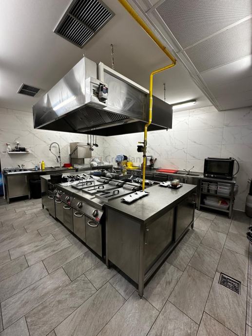 U prizemlju se nalazi prekrasan restoran sa velikom terasom (otvorena i zatvorena terasa) i pogledom na more, kuhinja, toaleti za osoblje,toalet za goste, toalet za invalide, lift, skladište, recepcija, prostorija za čuvanje prtljage, šank i dodatna spremišta.