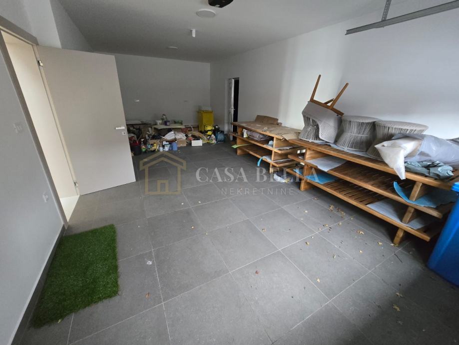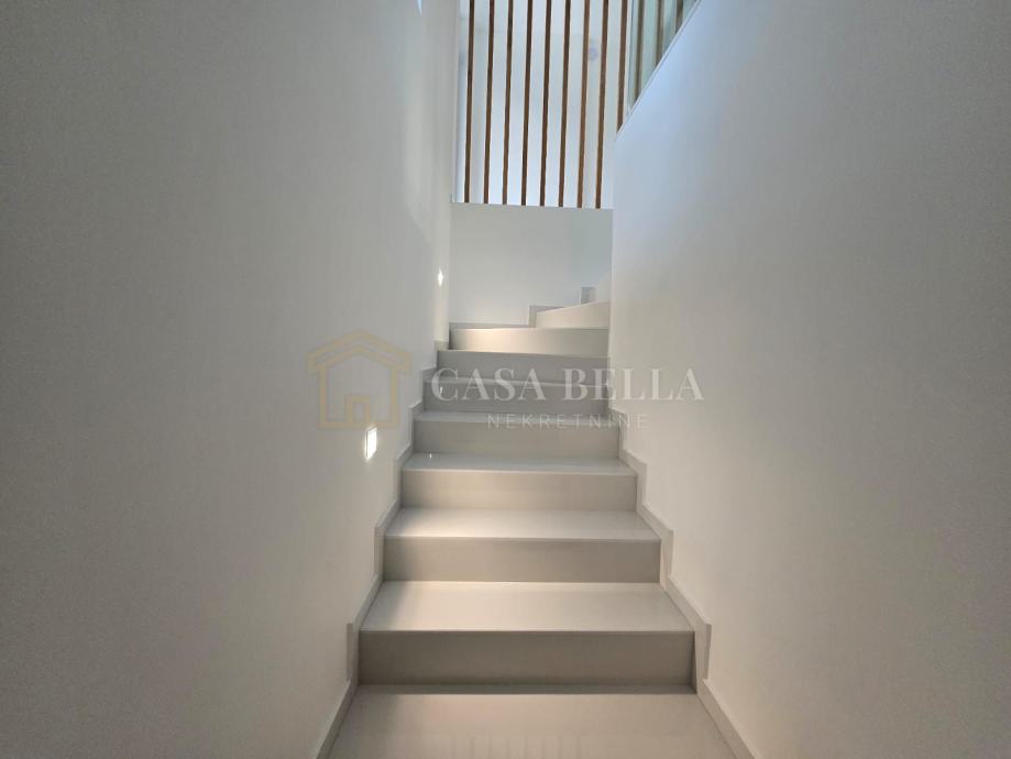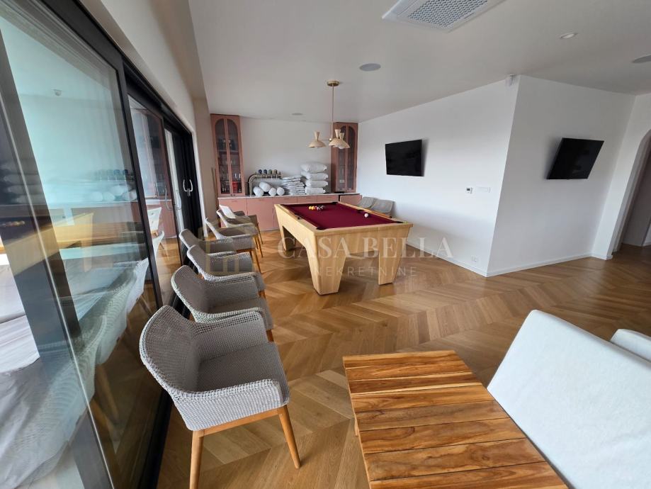 Kat kuće je poseban jer uz dvije spavaće sobe (svaka s vlastitom kupaonicom) ima veliki prostor koncipiran za zabavu i druženje s projektorom i platnom, bilijarski stolom (custom made) te potpuno opremljenim barom od lakiranog medijapana opremljenim s ugradbenim frižiderom i perilicom sudja Miele, točionikom za pivo/vino/vodu (4 nastavka) I jos 2 TV-a.