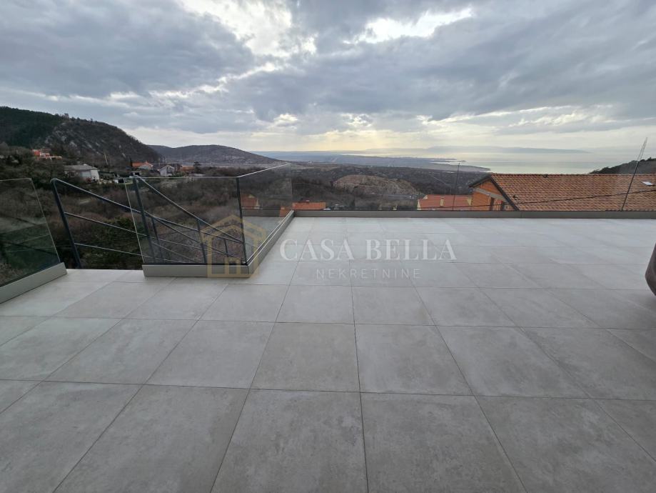 Velikim pomičnim zidnim stijenama povezan je s terasom s koje se pruža panoramski pogled na more. Terasa je opremljena namještajem od tikovine, i sastoji se od lounge dijela, velikog stola za ručavanje I vanjske kuhinje.