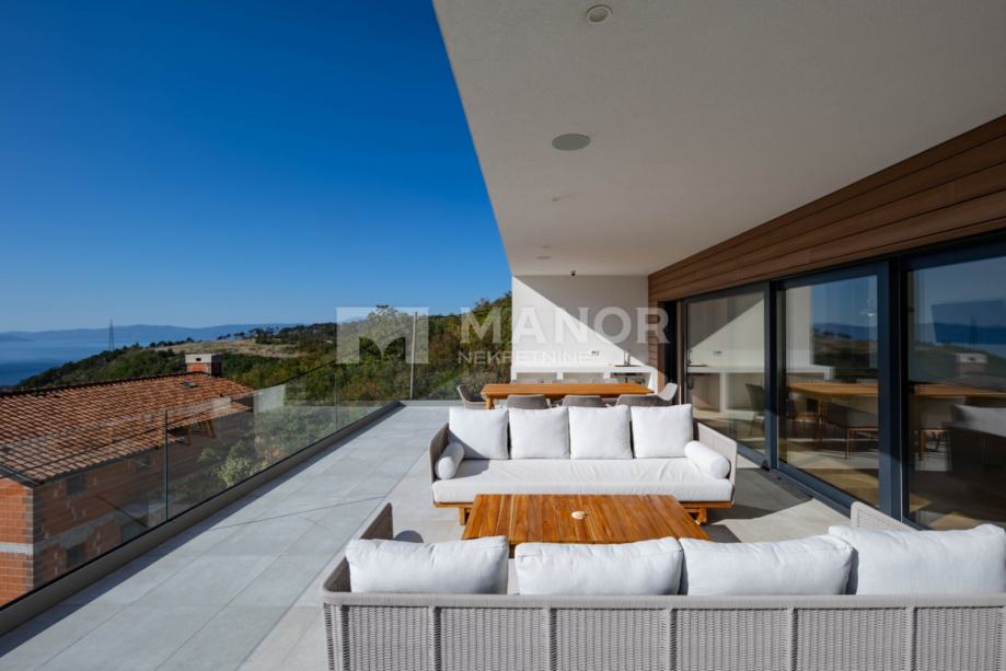 pogledom na Kvarnerski zaljev. Villa se prostire se na 400 m² te pruža smještaj za devet gostiju u čak četiri luksuzno