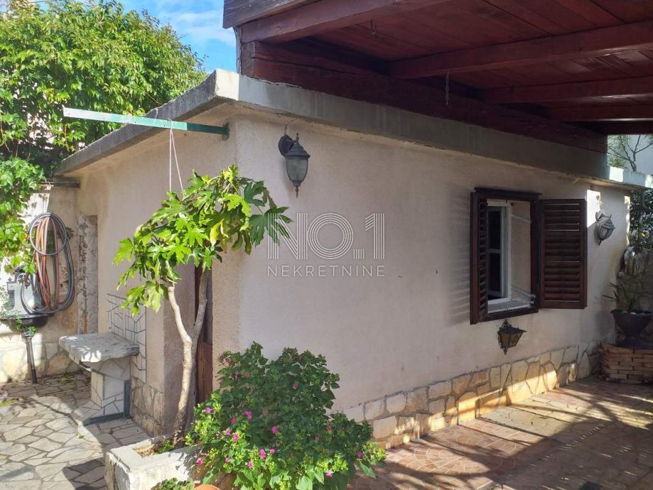 Uz kuću je 350 m2 okućnice s garažom od 15 m2, dodatnim natkrivenim parkirnim mjestom, ljetnom kuhinjom od 17m2 te natkrivenim prostorom s kamenim roštiljom koji se nalazi i u drugom dvorištu.