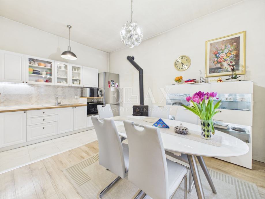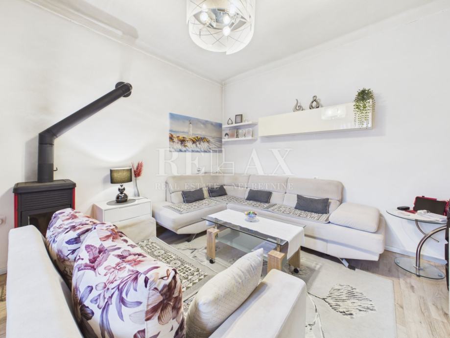 Kuća se sastoji od prizemlja i kata. U prizemlju se nalaze predsoblje, hodnik, kuhinja s blagovaonicom, dnevni boravak, kupaonica i jedna spavaća soba. Dnevni prostor odiše toplinom zahvaljujući kaminu na drva, dok kuhinja također ima vlastiti kamin, što dodatno doprinosi ugodnoj atmosferi tijekom zimskih mjeseci. Unutarnjim drvenim stepeništem dolazi se na prvi kat gdje se nalaze hodnik i dvije spavaće sobe. S gornje etaže pruža se pogled na more, što dodatno povećava vrijednost ove nekretnine.