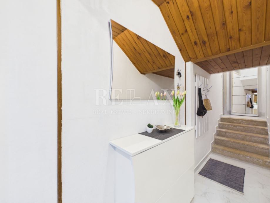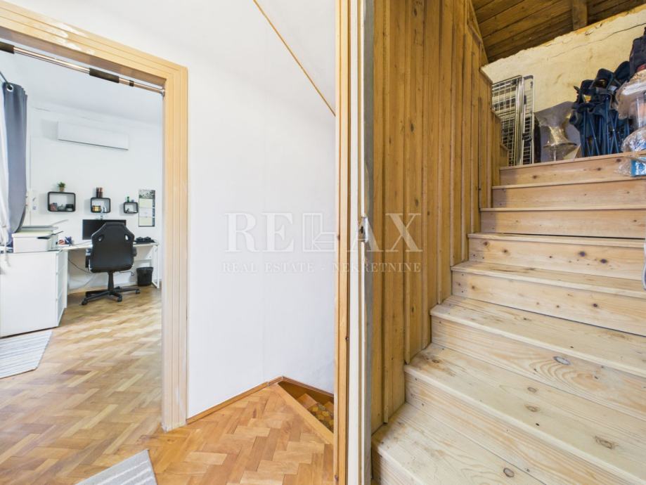 Stepenište dalje vodi u tavan koji se trenutačno koristi kao spremište, no postoji mogućnost preuređenja u dodatni stambeni prostor, čime se dobiva dodatna funkcionalnost i potencijal proširenja.