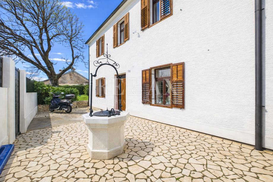 Nekretnini pripada okućnica površine 269 m2 koja pruža potpunu privatnost. Okućnica je uredno održavana te obuhvaća terasu ispred kuće i šternu koja se koristi za zalijevanje vrta. Trenutno nema osiguranih parkirnih mjesta, no postoji mogućnost formiranja više parkirnih mjesta unutar okućnice. Dostupan je javni parking ispred nekretnine.
