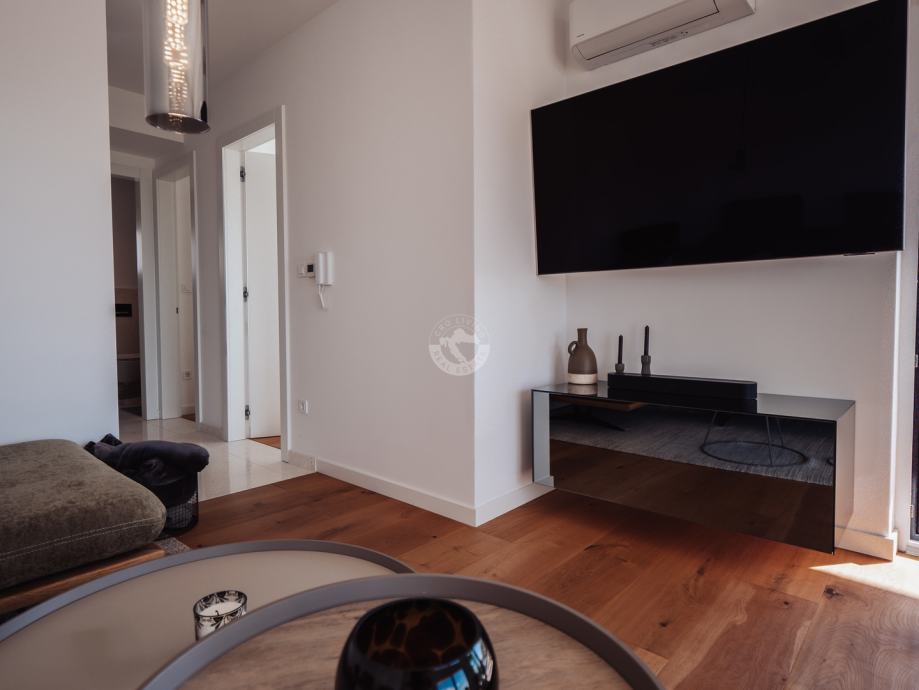 Na prodaju je visokokvalitetno opremljen stan koji se nalazi na prvom katu moderne i uredno održavane stambene zgrade u Tribunju, svega nekoliko minuta od mora.