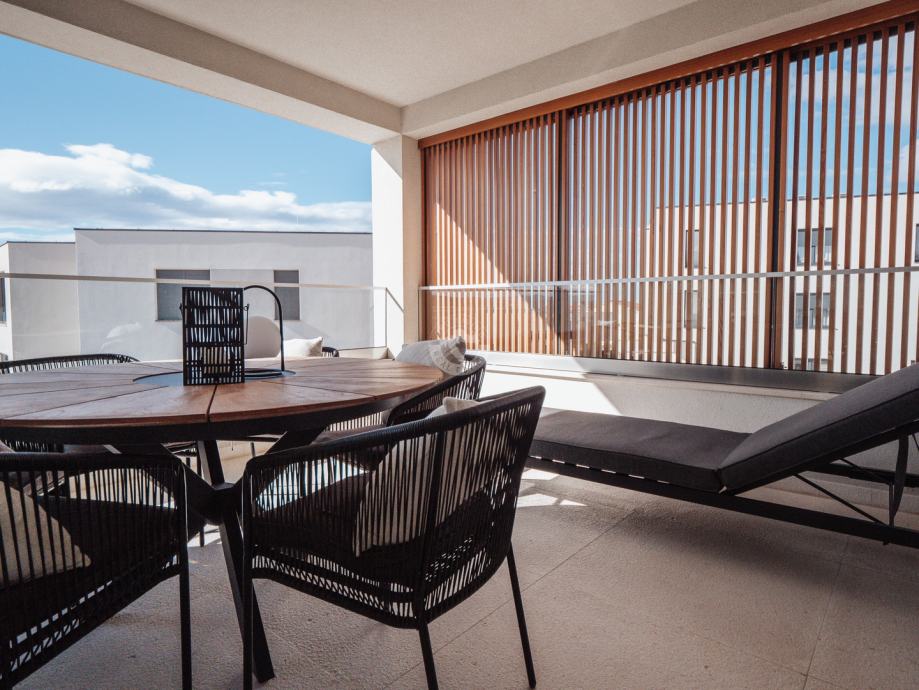 Stan ukupne površine 153,95 m2 sastoji se od četiri spavaće sobe, dvije kupaonice, prostranog i svijetlog dnevnog boravka s kuhinjom i blagovaonicom, te dvije natkrivene terase idealne za opuštanje.