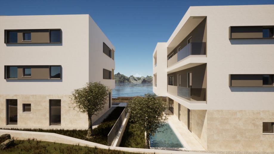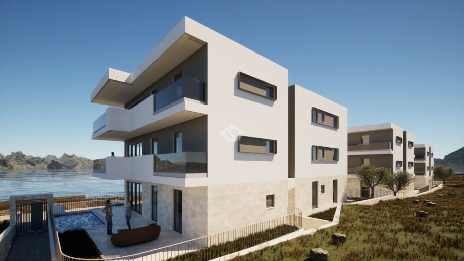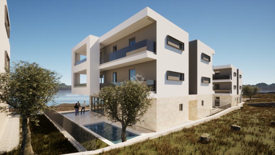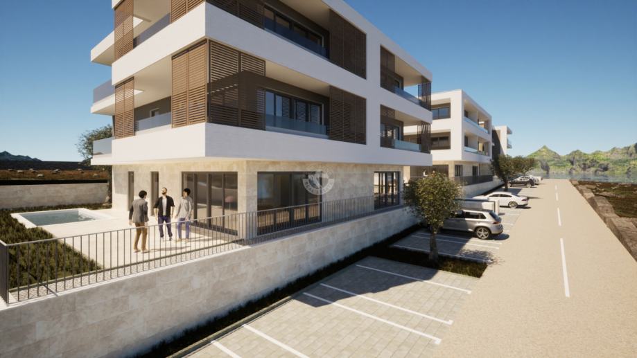 Hrvatska, Zadar, Vinjerac – Dvosobni apartman s terasom, bazenom i roš (prodaja)