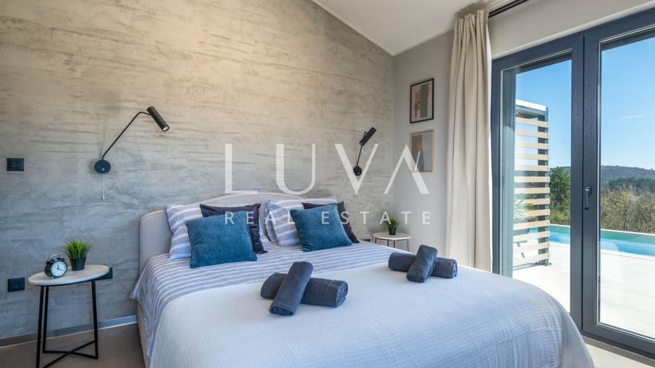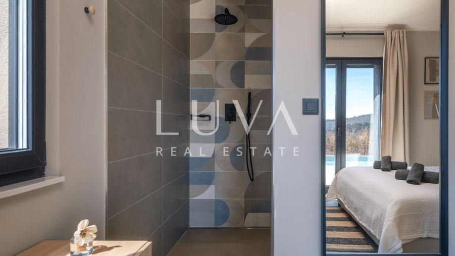 Kuća je izgrađena 2022. godine te se nalazi na posjedu od 1750 m2, a osim bazena kuća ima i vanjski Jacuzzi koji je smješten odmah pored bazena.