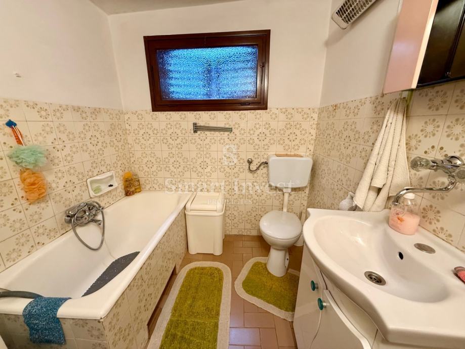 Cjelokupna okućnica površine oko 1300 m² uključuje vrt, parking i ugodan vanjski prostor koji pruža mnoštvo mogućnosti za uređenje – od mediteranskog vrta do rekreacijskih zona.