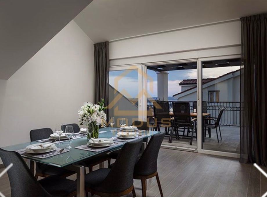 Sastoji se od tri spavaće sobe, dvije kupaonice, te kuhinje, blagavaonice i dnevnog dijela u povezanoj cjelini s izlazom na terasu.