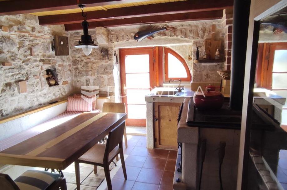 Hvar, Gdinj, lijepa kamena kuća u nizu, smještena u malom šarmantnom mjestu, na južnoj strani otoka.Proteže se na tri etaže, ukupne stambene površine od 54 m2. Na prvoj etaži se nalazi kuhinja, dnevni boravak i kupaonica. Na drugoj etaži je veća spavaća soba, a na zadnjoj je spavaća...