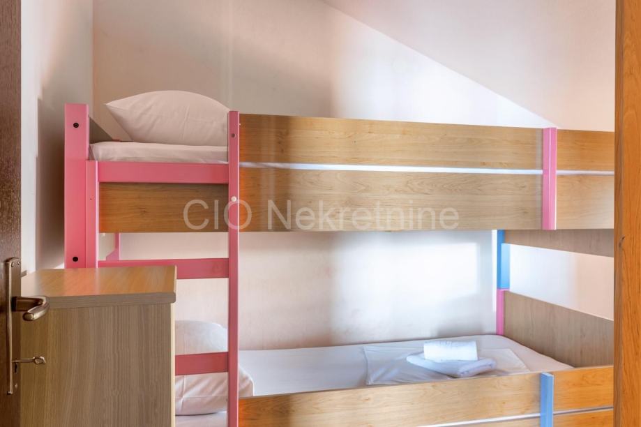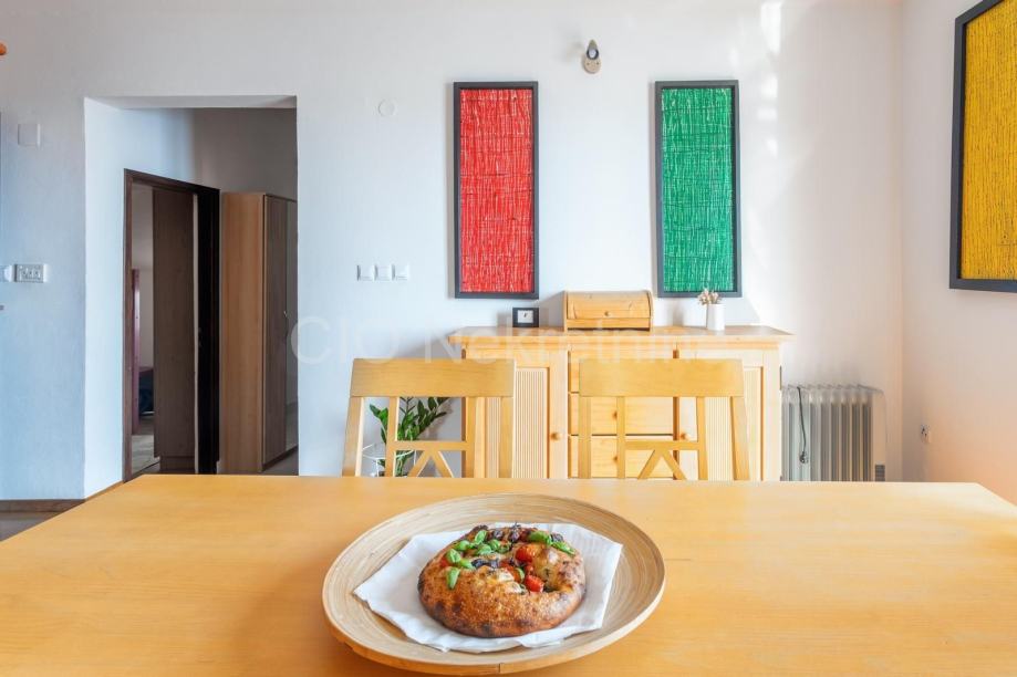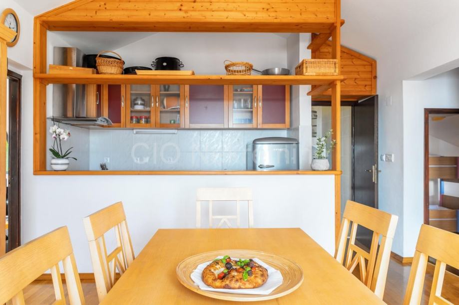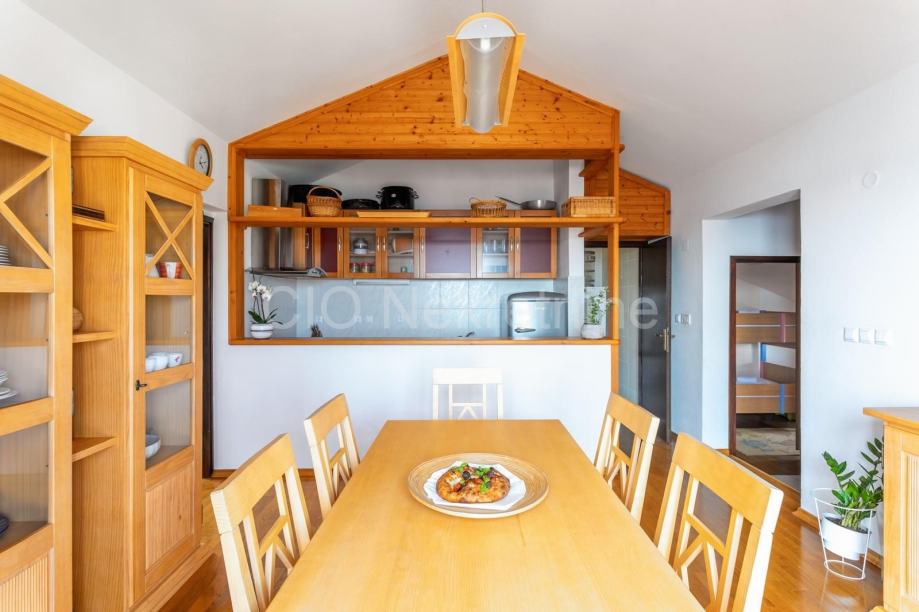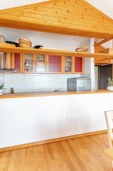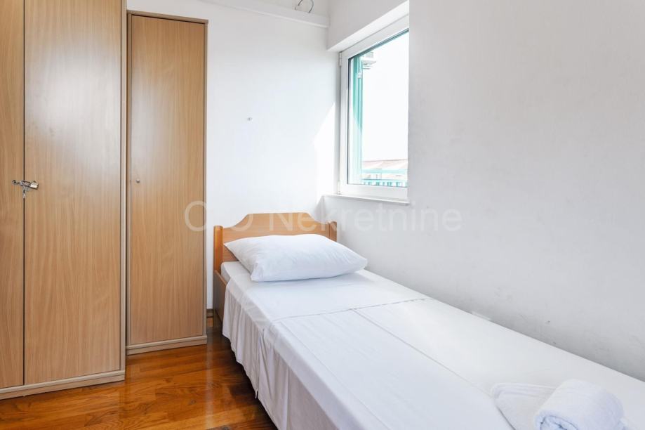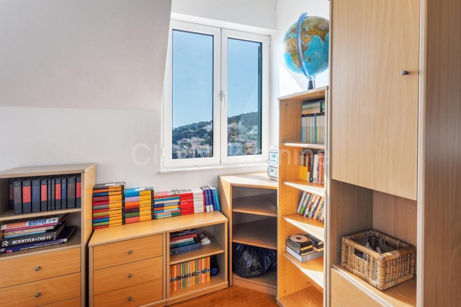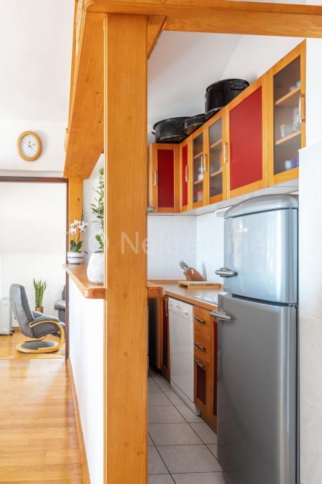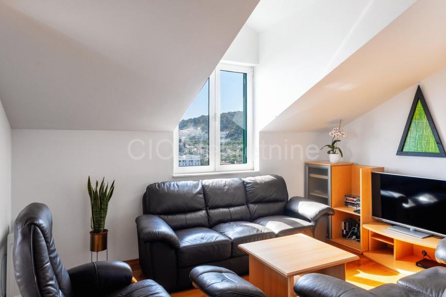 Stan je u naravi penthouse kojeg čine hodnik, tri sobe, kuhinja, blagovaonica, kupaonica i dnevni boravak. Također ima pripadajuće stepenište od 3,73 m2, balkon površine 3,77 m2 i prostranu terasu od 38,85 m2, što čini ukupnu površinu od 114,22 m2.