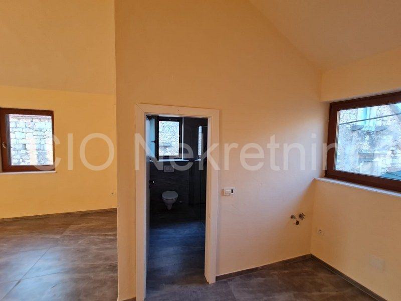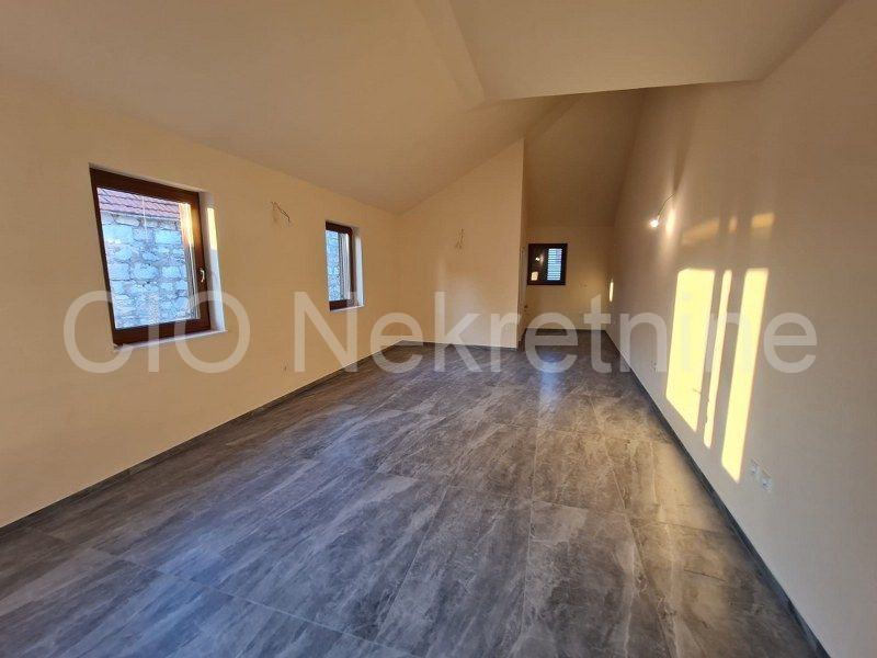 U prizemlju se nalazi kuhinja, dnevni boravak s blagovaonicom, spavaća soba i kupaonica (ukupno 65 m2). Prvi kat ima površinu 40m2 i sastoji se od jedne prostorije i kupaonice te može biti lijep jednosoban stan.Također na prvom katu postoji velika terasa od 23m2 sa pristupom u dvorište. Visoki krov daje mogućnost postavljanja drvene galerije gdje se po potrebi može postaviti još jedan ležaj. Kuća je nenamještena, kvalitetno opremljena, nalazi se u centru Jelse. Kuća ima dvor s vrtom od 193 m2 i jacuzzi. Vlasništvo je uredno! Nalazi se u blizini svih sadržaja, odlična je kao kuća za odmor ili može biti izvrsna kao investicija u funkciji turizma. U izgradnji kuće korišteni su vrhunski materijali, a objekt je klimatiziran. Unutrašnji prostor obložen je vrhunskom talijanskom keramikom, a kupaonice su kompletno opremljene.