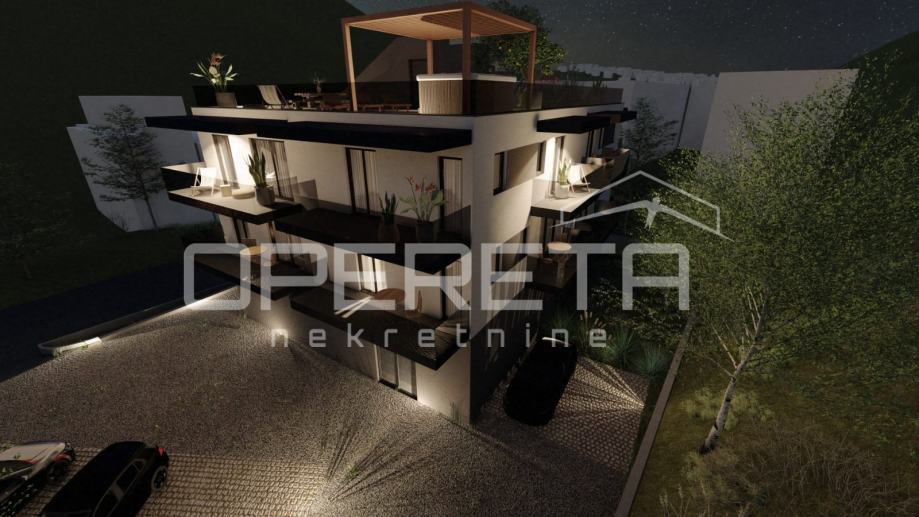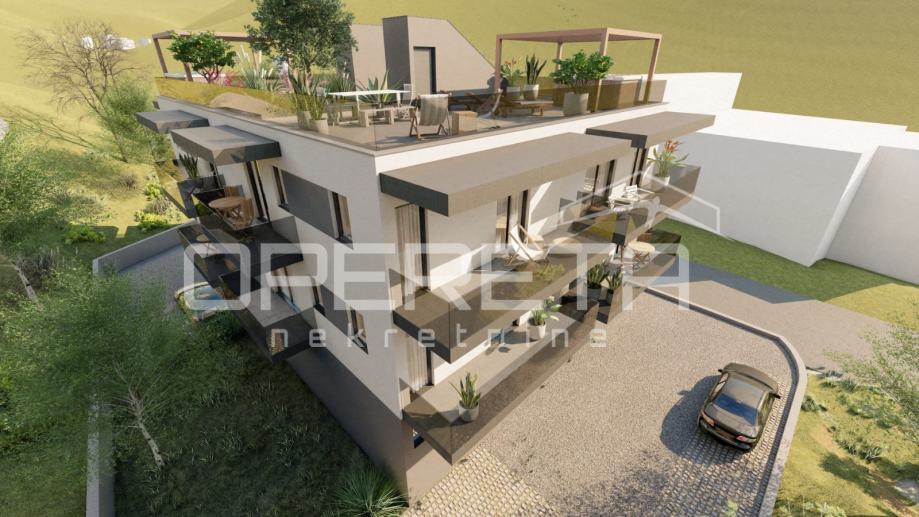 Zgrada je moderne arhitekture, zajednički prostori uređeni su za sigurnost i udobnost stanara. Lokacija omogućuje jednostavan pristup trgovinama, školama, restoranima i šetnicama uz more.