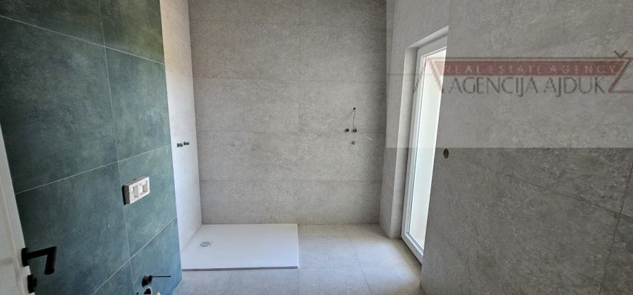 Svi podovi osim kupaonice i wc-a su vinyl podloga sa podnim grijanjem. Stan je također opremljen sa pripremom za klimu, pvc zatvori vrhunske kvalitete sa alu griljama. Iz dnevnog boravka sa izlazi na južnu terasu otvaranjem klizne stijenke vrhunske kvalitete. Ulazna vrata u stan su protuprovalna i protupožarna blindo.