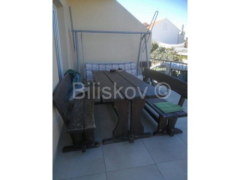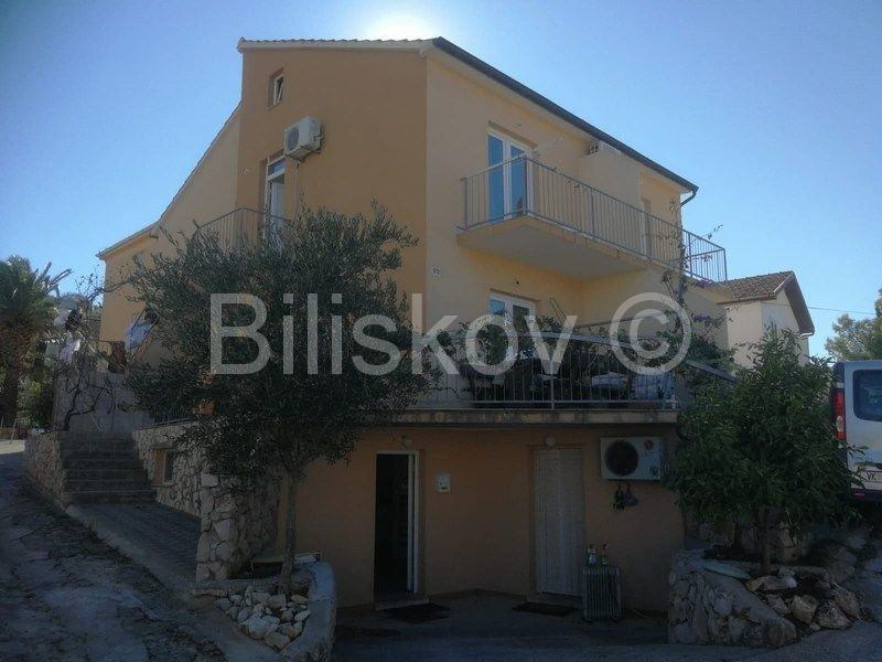 Apartmanska dvojna kuća na tri etaže ukupno korisne površine160m2, na parceli od 337m2, koja se sastoji od 5 apartmana. Apartmani su veličine od 18m2-34m2, dva apartmana su u suterenu, jedan na prizemlju i dva na prvom katu. Svaki apartman ima kuhinju, kupatilo, jednu spavaću sobu i balkon. U prizemlju kuće nalazi se velika terasa i roštilj, i osigurana dva ograđena parkirna mjesta. Nalazi se u mirnoj ulici, 5 minuta šetnje udaljena od plaže i centra.