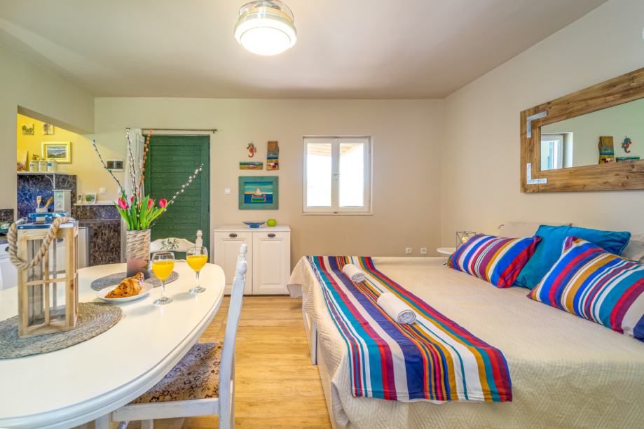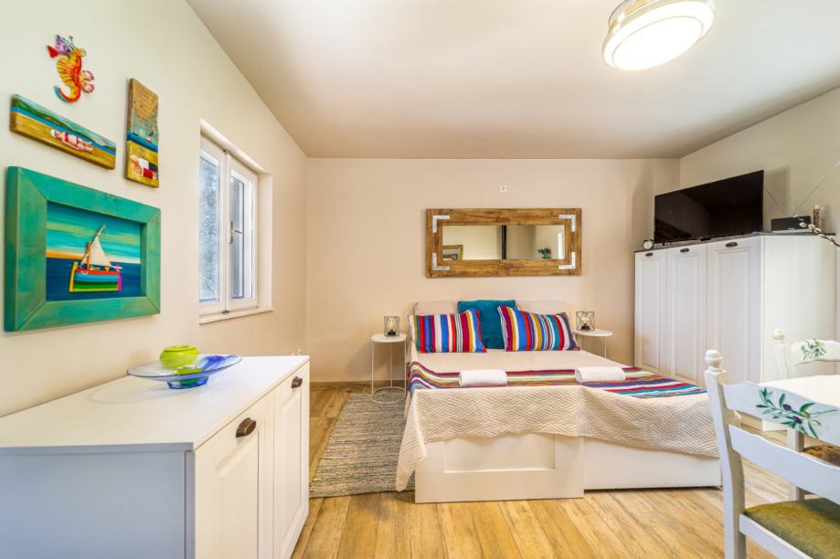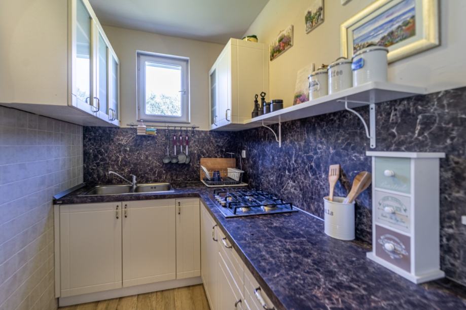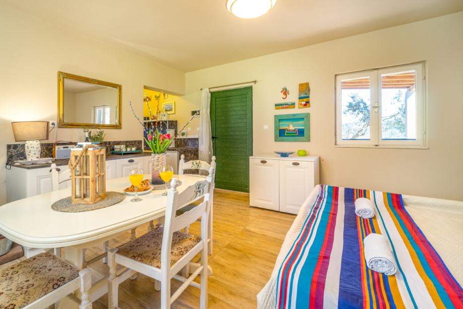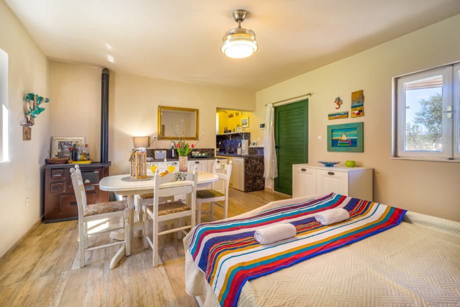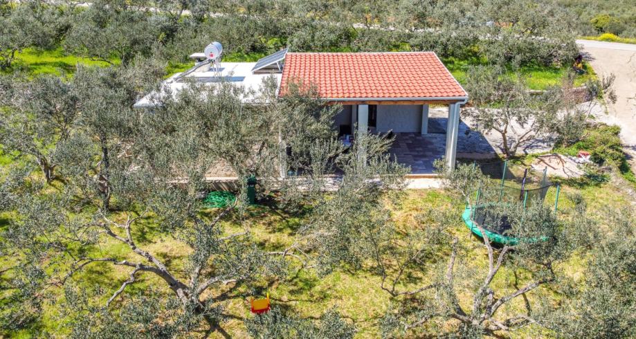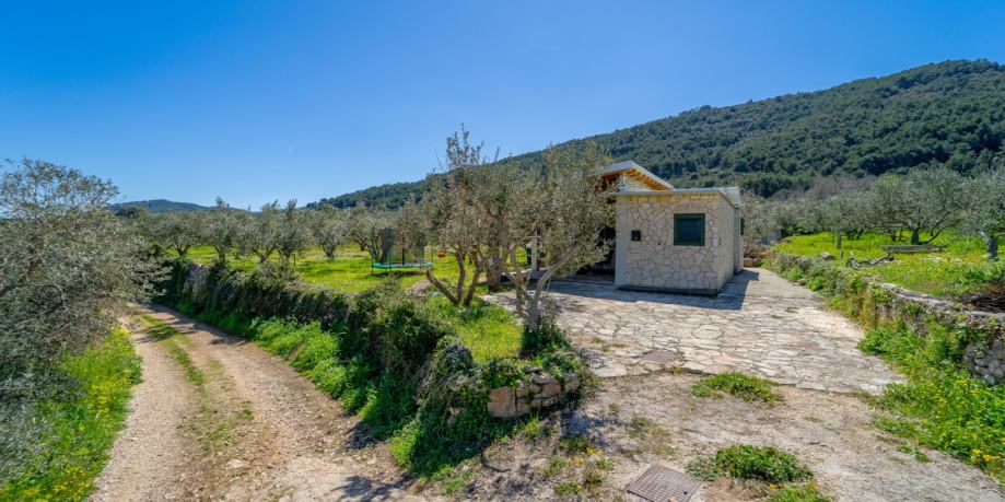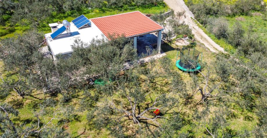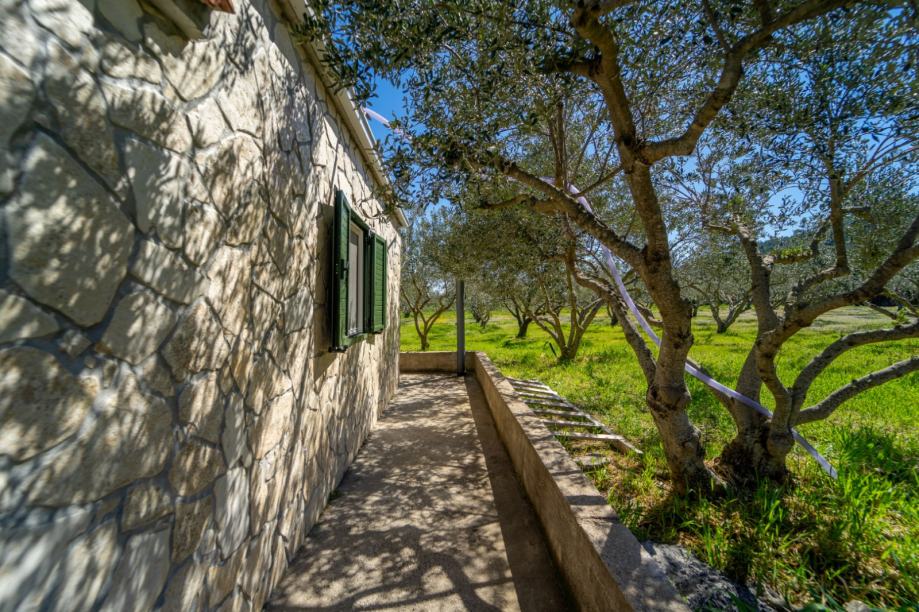 Kuća prizemnica površine 51 m2, na zemljištu površine 2.300 m2, na prekrasnoj mirnoj lokaciji u blizini Starog Grada, koja se sastoji od spavaće sobe s vlastitim ulazom, kuhinje s blagovanicom i dnevnim prostorom, kupaonice i terase, stambene namjene, potpuno namještena i opremljena, s priključcima vode i struje, vanjski roštilj, sa 60 stabala maslina, kategorizirana za turistički najam.