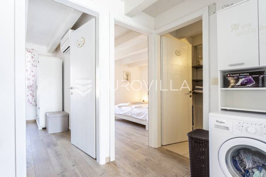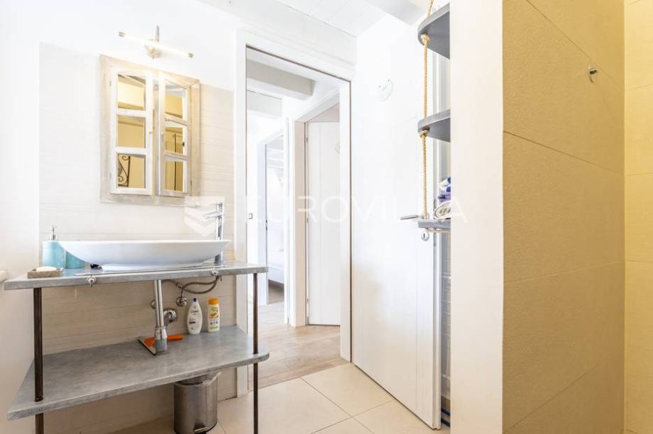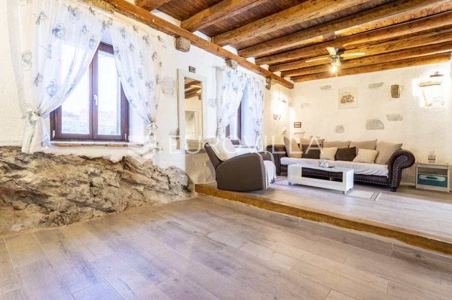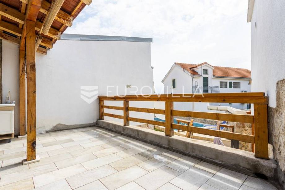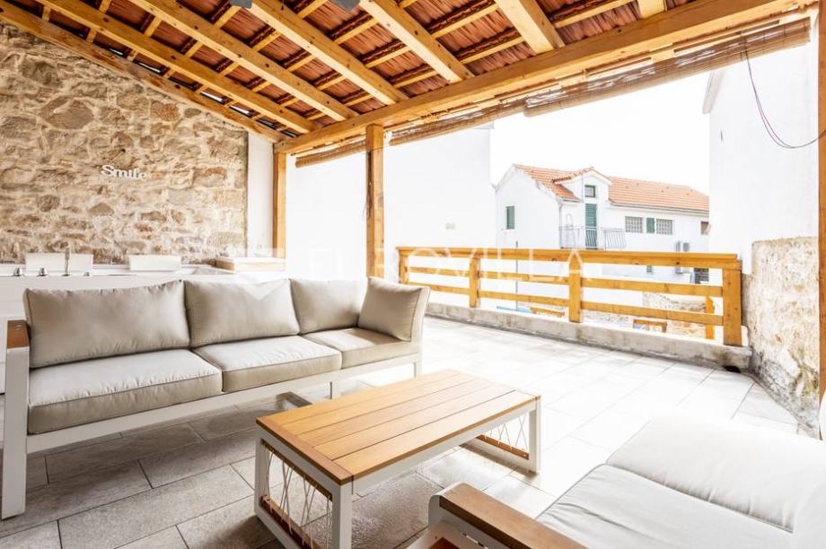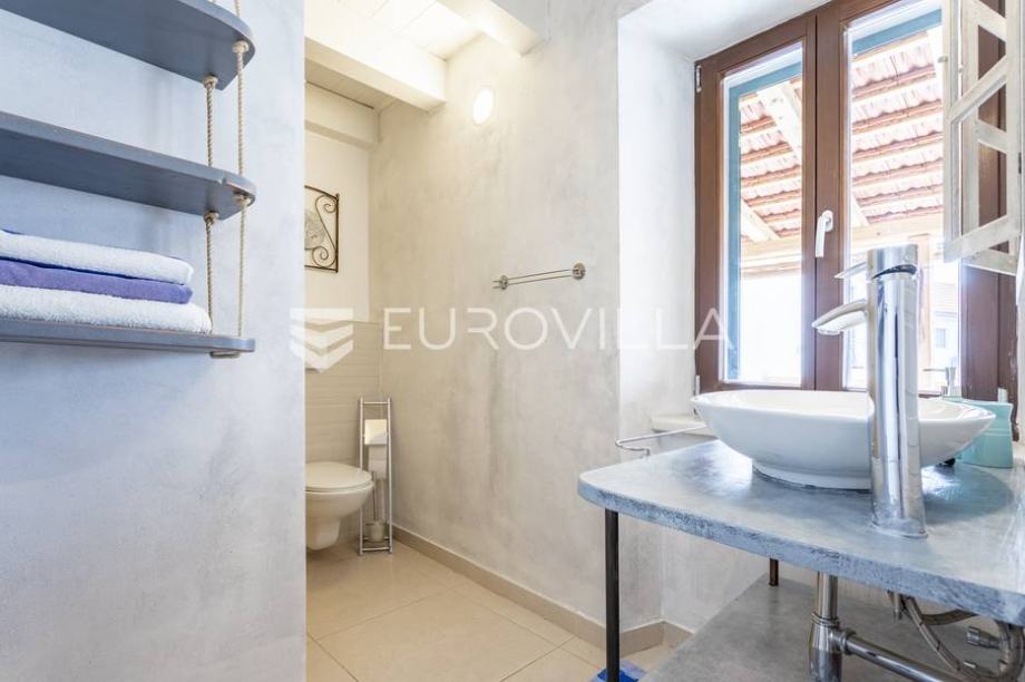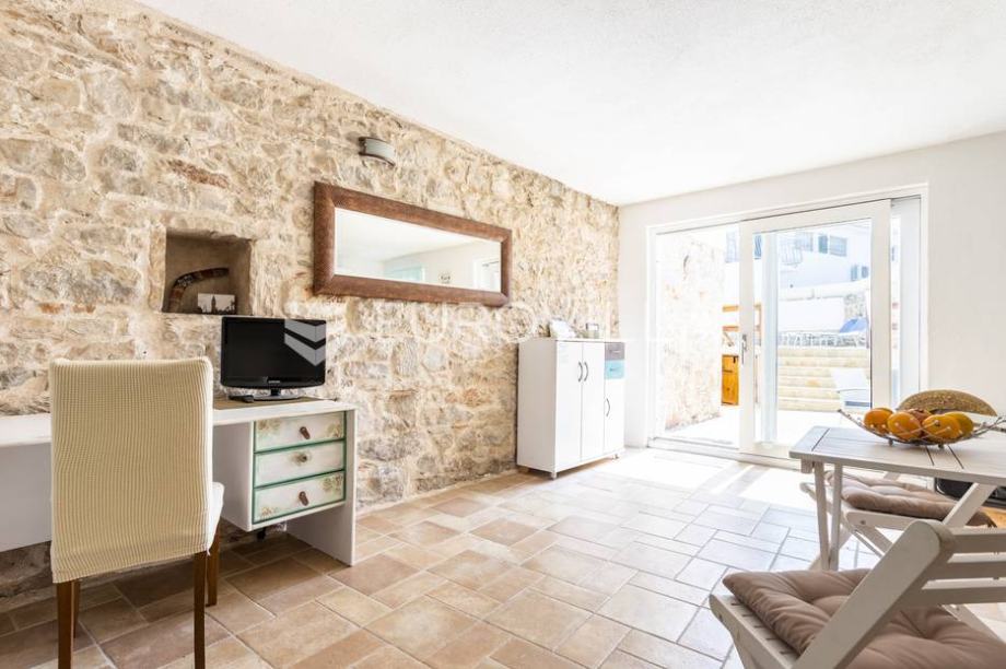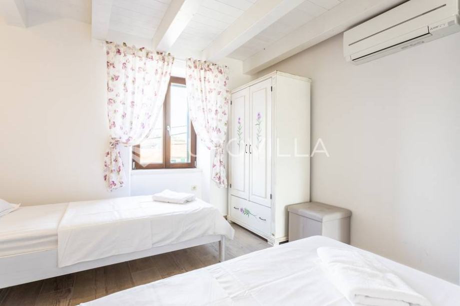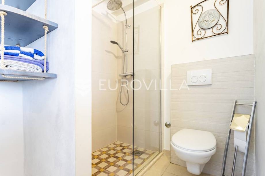 Kamena autohtona kuća s bazenom i jacuzzijem, smještena je u samom centru prekrasnog kamenog sela Vrbanj. Potpuno je renovirana u retro stilu, sa shabby chic detaljima, te je koncipirana kao mjesto za opuštanje i uživanje, iz koje, obzirom na njene sadržaje, ne trebate nikuda ići. Ili kao druga opcije može služiti kao početna točka za istraživanje okolnih šuma, plaža, uvala te prekrasnih domaćih jela i vina u mnogim autentičnim konobama.Vrbanj se nalazi u gotovo samom centru najsunčanijeg otoka na Jadranu, Hvara. Izvrsno je prometno povezan s Jelsom, Starim Gradom, Svetom Nedjeljom, Vrboskom, Zavalom, Hvarom i Sućurajem. Udaljen je svega 3 km od mora te se biciklom može doći za 15 minuta do Starog Grada ili 10 minuta do Jelse odnosno Vrboske.Ulaskom u dvorište Ville, ispod kamenog starinskog volta, s lijeve strane dočekat će vas veliki bazen. U nastavku ćete doći do dvije cjeline za odmor, lounge zone za opuštanje pored bazena i prostora s ručno rađenim kaminom i drvenom nadstrešnicom za druženja s prijateljima.U prizemlju unutar kuće ulazi se u prostor za blagovanje s velikim drvenim stolom za 6 osoba i ručno rađenim bakrenim ogledalom. Odmah do blagovaone je kuhinja u retro stilu. U dnevni boravak se ulazi kroz stara tirkizna drvena vrata te ćete se naći u kamenom prostranom dnevnom boravku sa starinski uređenim namještajem u shabby chic stilu. U sklopu dnevnog boravka nalazi se gostinjski wc uređen u istom stilu.Iz prizemlja, pored blagovaone, kroz otvor u podu, vode stepenice u oazu morskih dubina. Stara gustirna je u potpunosti prilagođena odmoru za dušu i tijelo, dajući nevjerojatan osjećaj mira i spokoja.Na 1. katu se nalaze 2 spavaće sobe i kupaonica, te prostrana terasa s jacuzzijem i mini kuhinjom, te lounge zonom. Prva soba je Oleander room s dva odvojena kreveta i ručno ukrašenim ormarima, noćnim ormarićima te uzglavljima kreveta u oleandar stilu. Također su i ručno šivene zavjese cvjetnog uzorka koji daju dašak otmjenosti Oleander room-u. Druga spavaća soba je Lavander room s bračnim krevetom 180* 200, noćnim ormarićima i ormarom, sve sa sitnim detaljima Lavande.Na 2. katu se nalazi najveća spavaća soba (Olive room) s walk-in kupaonicom. I pod i strop su drveni, te je prisutan osjećaj planinske kolibe, ali sa daškom Mediterana obzirom na uzorak masline ručno oslikan na krevetu, komodi te velikoj drvenoj kutiji za stvari.To je ujedno i priča ove Vile, koja vas vodi od morskih dubina do planinskih vrhova, kako god se vi željeli osjećati.Ova Villa je potpuno opremljena i prodaje se s namještajem. Svaka soba ima klimu, a u dnevnom boravku te Dive & Relax zoni klimatizacija tijekom ljeta nije potrebna obzirom da kamen kuće prirodno drži nižu temperaturu od one vanjske. Svaki detalj ove Vile smo osmislili s ljubavlju i pažnjom i sigurni smo da će to prepoznati i budući vlasnici.Za sva ostala pitanja, stojim na raspolaganju....