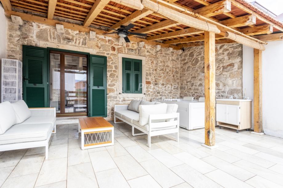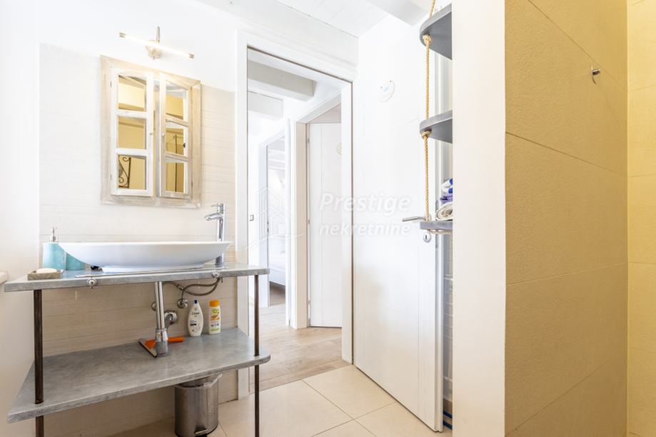 Ova Villa je potpuno opremljena i prodaje se s namještajem. Svaka soba ima klimu, a u dnevnom boravku te Dive & Relax zoni klimatizacija tijekom ljeta nije potrebna obzirom da kamen kuće prirodno drži nižu temperaturu od one vanjske. Svaki detalj ove Vile smo osmislili s ljubavlju i pažnjom i sigurni smo da će to prepoznati i budući vlasnici.