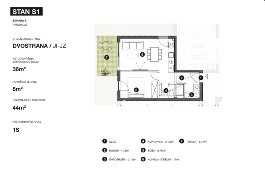 Hvar, Vrboska, jednosoban stan u novogradnji smješten u prizemlju manjeg stambenog objekta.Površina zatvorenog dijela je 36 m2.Orijentacija stana je jugoistok - jugozapad.Stan se sastoji od hodnika, garderobe, kupaonice, spavaće sobe, kuhinje s blagovaonicom, dnevnog boravka i terase.Parkirna...Za ovu nekretninu kontaktirajte asistenta u prodaji na broj telefona +385 91 615 6253.Više na Eurovilla.hr, ID: 533098Direktan link: https://eurovilla.hr/nekretnina/hvar-vrboska-jednosoban-stan-u-novogradnji-nkp-40-m2/533098/-----Hvar, Vrboska, one-bedroom apartment in a new building located on the ground floor of a smaller residential building.The area of the closed part is 36 m2.The orientation of the apartment is southeast - southwest.The apartment consists of a hallway, wardrobe, bathroom, bedroom, kitchen with dining... For this property contact our agent on telephone number +385 91 615 6253.More on Eurovilla.hr, ID: 533098Direct link: https://eurovilla.hr/en/property/hvar-vrboska-one-bedroom-apartment-in-a-new-building-nfa-40-m2/533098/...