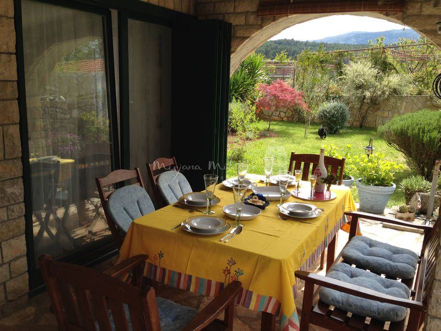 Otok Hvar, VRBOSKA, PRODAJE SE kompletno uređena kuća sa 3 apartmana, gospodarskom zgradom i prekrasnim vrtom ukupne stambene površine 180 m2. Kuća i okućnica su smješteni na parceli od ukupno 640m2. Kuća već godinama služi turističkom najmu te se takva namještena i opremljena, prodaje. Nalazi se na 2 min hoda od obale.