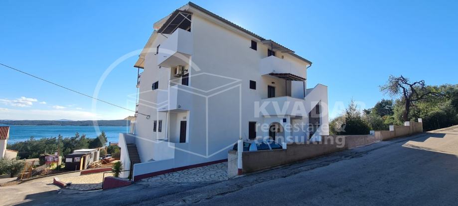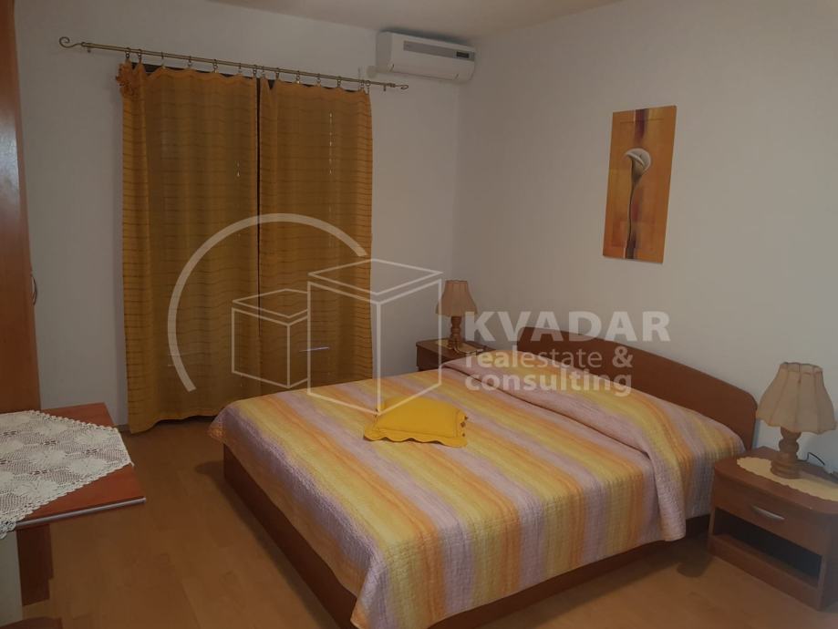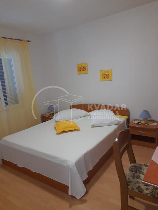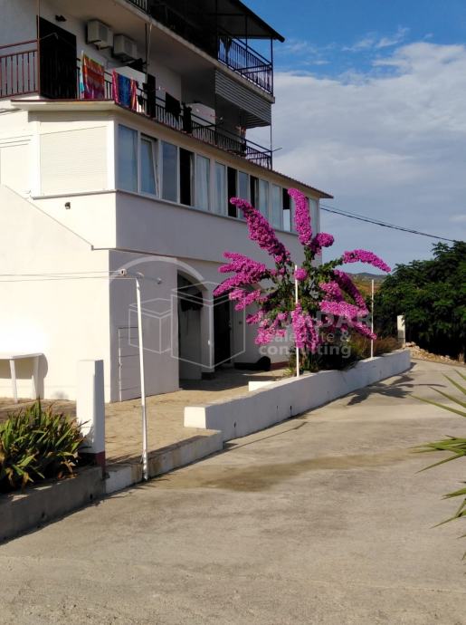 Stan na prvom katu, ukupne kvadrature 142m2, sadrži 4 spavaće sobe, 3 kupatila sa toaletom, kuhinju sa trpezarijom i dnevnim boravkom, te ima izlaz na lođu sa koje se pruža prekrasan pogled na more i okolinu.