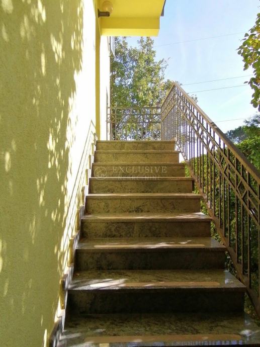 The building itself is really superb and extremely well built, quality materials were used (demit facade 8 cm, granite, wrought iron fences, ...). The building has a beautifully landscaped garden, an exceptionally spacious parking lot and is located in an excellent and peaceful location with a beautiful view of the sea. The distance to the sea and the beach is approx. 1 km as the crow flies, or approx. 3 km by road.