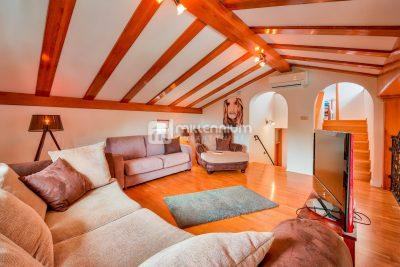 Kuća se sastoji od prostranog dnevnog boravka povezanog s modernom kuhinjom i blagovaonicom, stvarajući otvoreni i svijetli prostor idealan za druženje i opuštanje. Posebnu čar daje galerija uređena kao kutak za odmor, dok dvije prostrane spavaće sobe, svaka sa svojom kupaonicom, pružaju privatnost i mir.