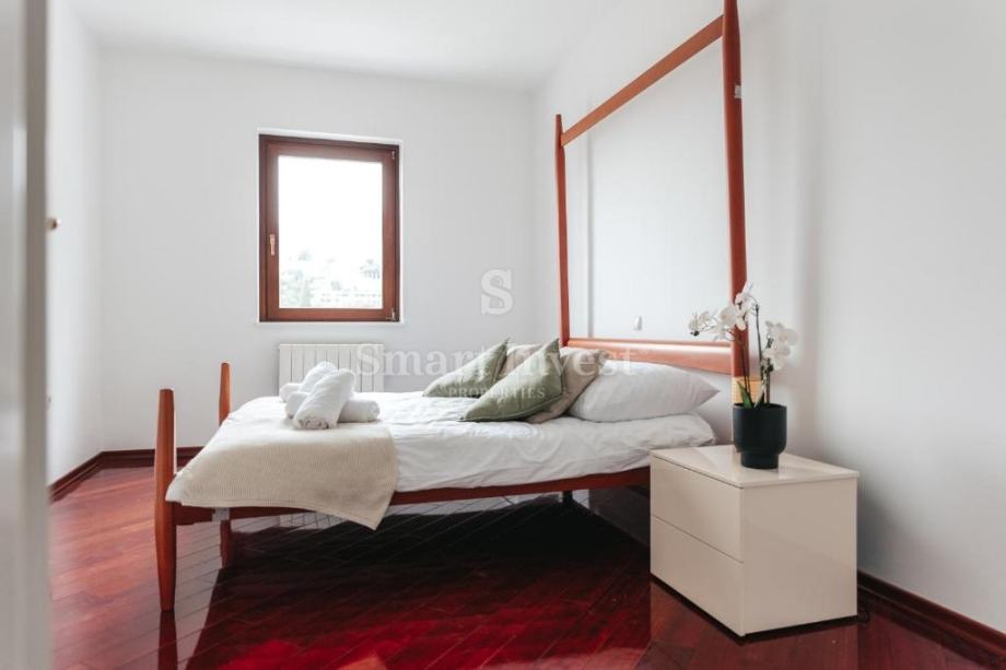 Dugoročno se iznajmljuje lijepo uređen stan s očaravajućim pogledom na more u vilu s bazenom i parkingom na iznimnoj lokaciji u neposrednoj blizini mora i ACI marine.