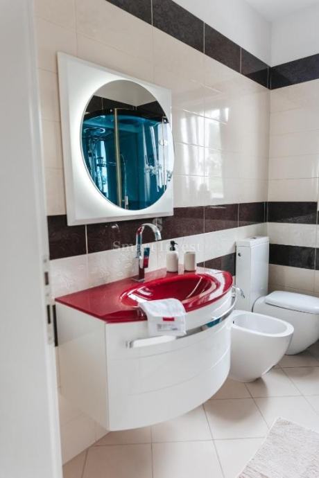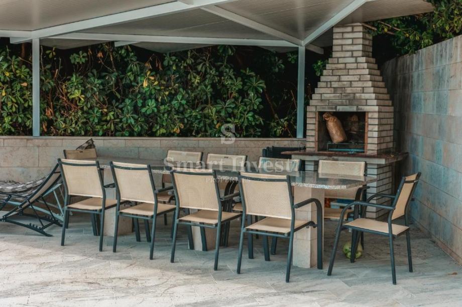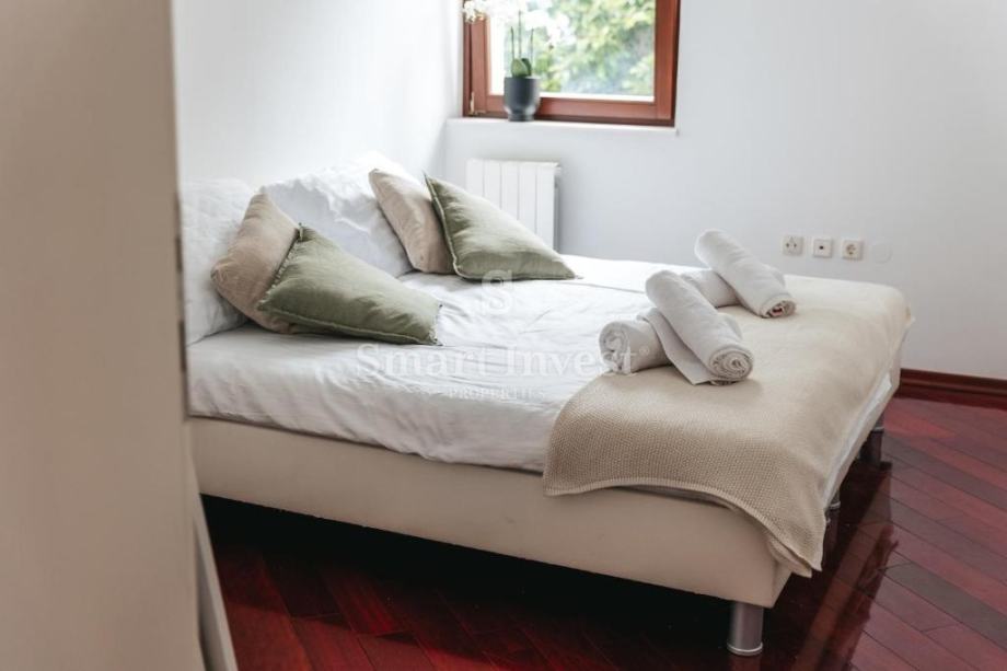 Vila je okružena prostranom lijepo uređenom i njegovanom okućnicom, a na raspolaganju su vam i prekrasni bazen sa sunčalištem, vanjski roštilj, sauna te natrkiveni parking za više vozila.