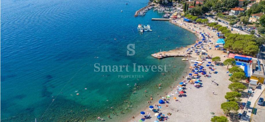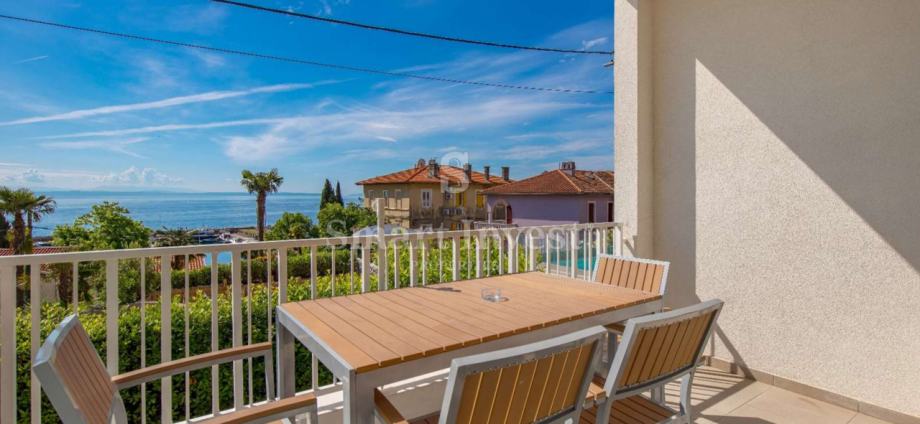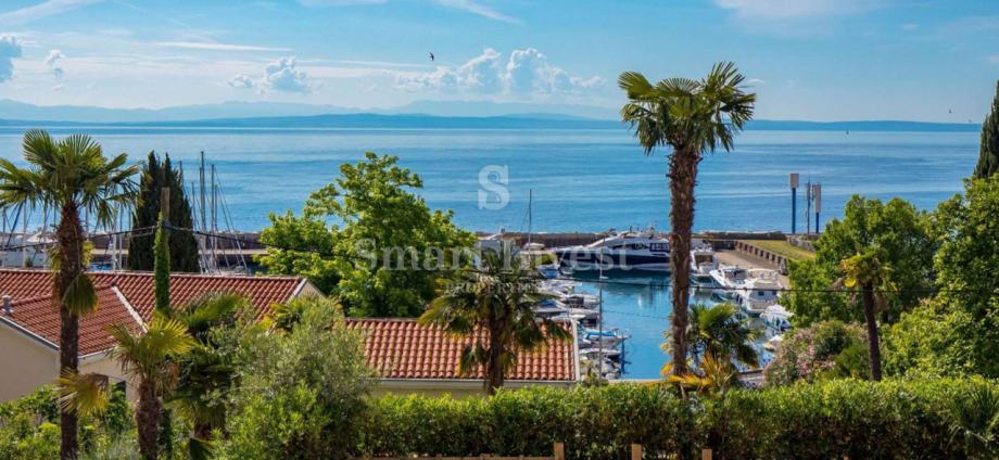 Stan se nalazi u visokom prizemlju i ima lijepu terasu iz koje se pruža prekrasan pogled na cijeli Kvarner.