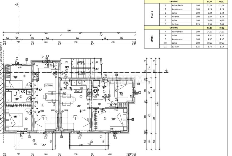 Stan oznake S5 nalazi se na drugom katu zgrade s ukupno 7 stanova. Stan ima ukupnu neto korisnu površinu od 55,44m2, od čega unutarnja površina stana iznosi 47,08m2, a površina balkona 8,74m2.