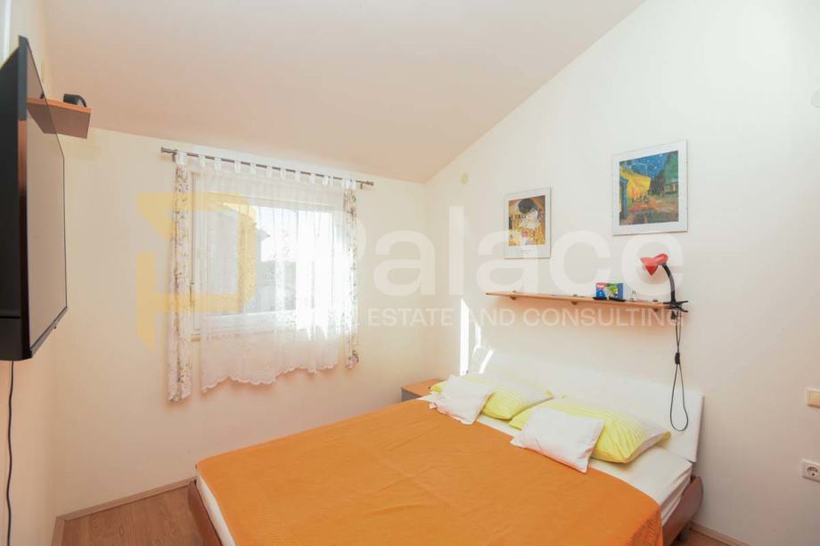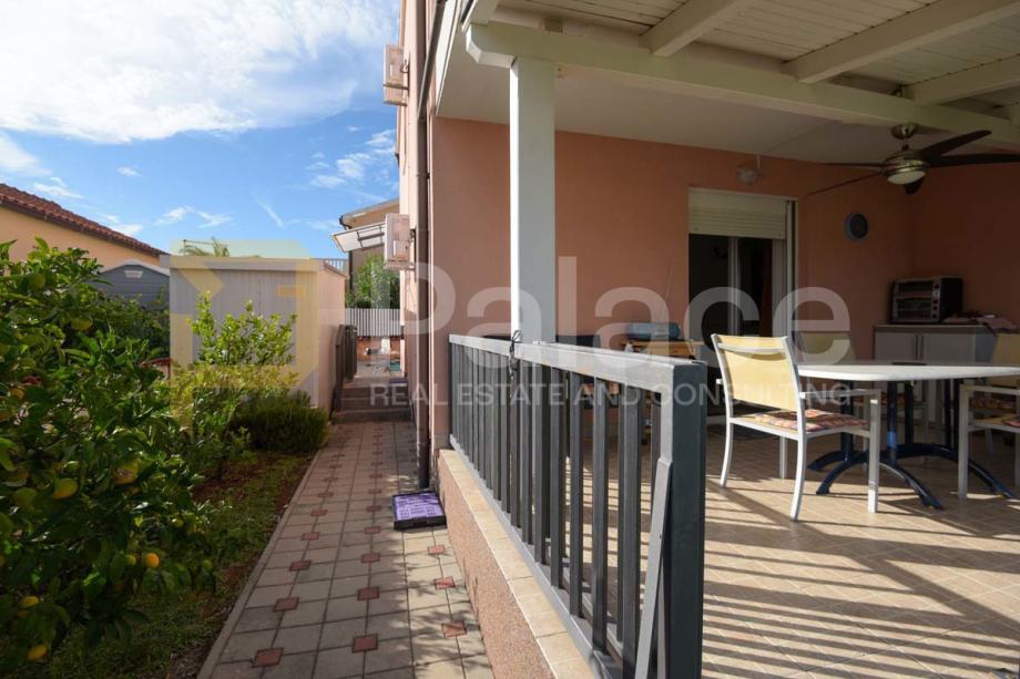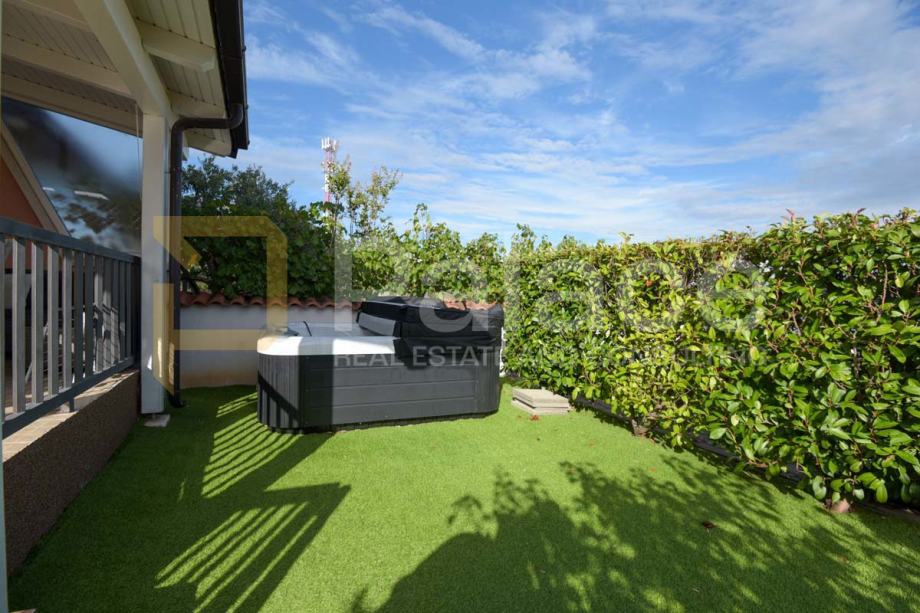 Smještena na parceli veličine 460 m2, ova nekretnina osim blizine plaže, sadrži i lijepu uređenu okućnicu veličine 176 m2 sa bazenom, i veliku vanjsku ljetnu terasu okruženu mediteranskim biljem. Za sve ljubitelje opuštanja u većim temperaturama, tu je i vanjski jacuzzi.