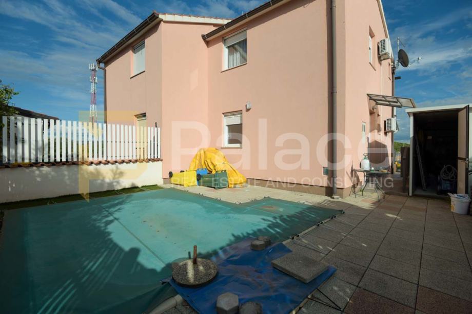 Kuća se sastoji od dvije etaže, ukupne stambene kvadrature 77 m2. U prizemlju se nalazi kuhinja sa blagovaonicom i dnevni boravak, staklenom stijenom povezan sa vanjskom terasom. Unutarnje stubište sadrži dva ulaza, unutarnji s kojim se iz prizemlja pristupa gornjoj etaži na kojoj su smještene spavaće dobe, i vanjski ulaz, za jednostavan pristup sa bazena. Tu se smješten i wc, praktičan za uporabu bilo da se nalazite u dvorištu ili u kući. Na prvom katu nalaze se dvije spavaće sobe, od kojih jedna ima i vlastiti balkon, te prostrana kupaonica. Obje etaže su klimatizirane, stoga je boravak u kući tijekom ljetnih mjeseci iznimno ugodan.