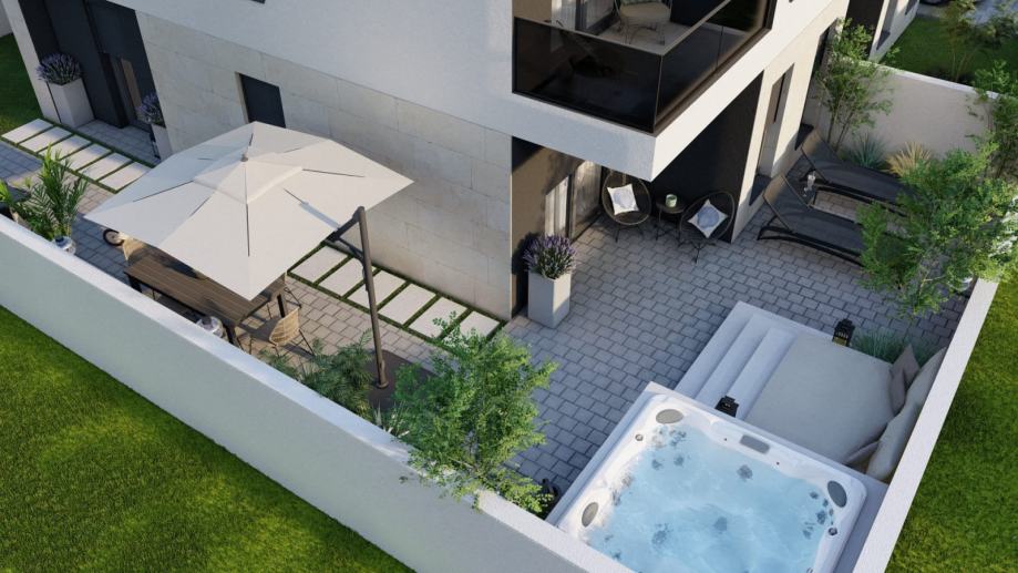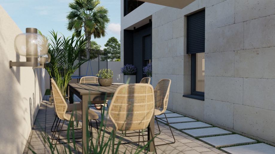 Uživajte u udobnosti moderne arhitekture u mirnom predgrađu Pule, samo 4 km od centra grada. Predstavljamo vam prekrasan stan ukupne stambene površine 40 m2 s vrtom, smješten u novoizgrađenoj stambenoj zgradi s samo šest jedinica.