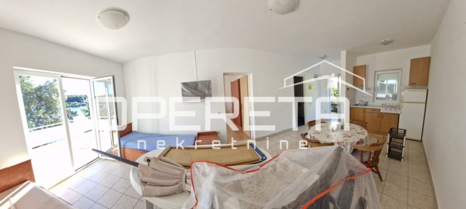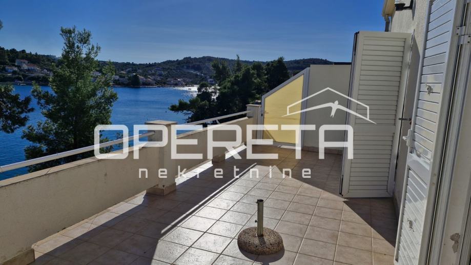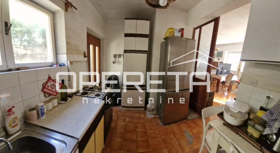 Kuća se sastoji od tri stambena prostora. U prizemlju se nalazi stan koji zahtijeva renovaciju, a čini ga kuhinja, blagovaonica, dnevni boravak, dvije spavaće sobe, kupaonica i WC. Stan izlazi na veliku terasu s nevjerojatnim pogledom na more, dok sa stražnje strane kuće, u blizini kuhinje, postoji manja privatna terasa s prostorom za roštilj, idealna za uživanje u mirnim ljetnim večerima.