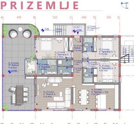 * Stanovi se protežu na etaže te je prizemlje: 120 m2, 1. kat: 121 m2 i 2. kat od 104 m2